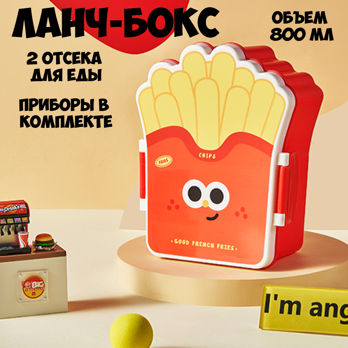 Купить Ланч бокс детский в школу, контейнер для еды с приборами, Картошка Фри