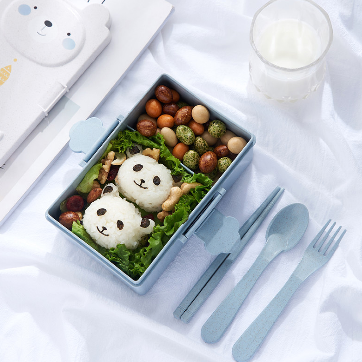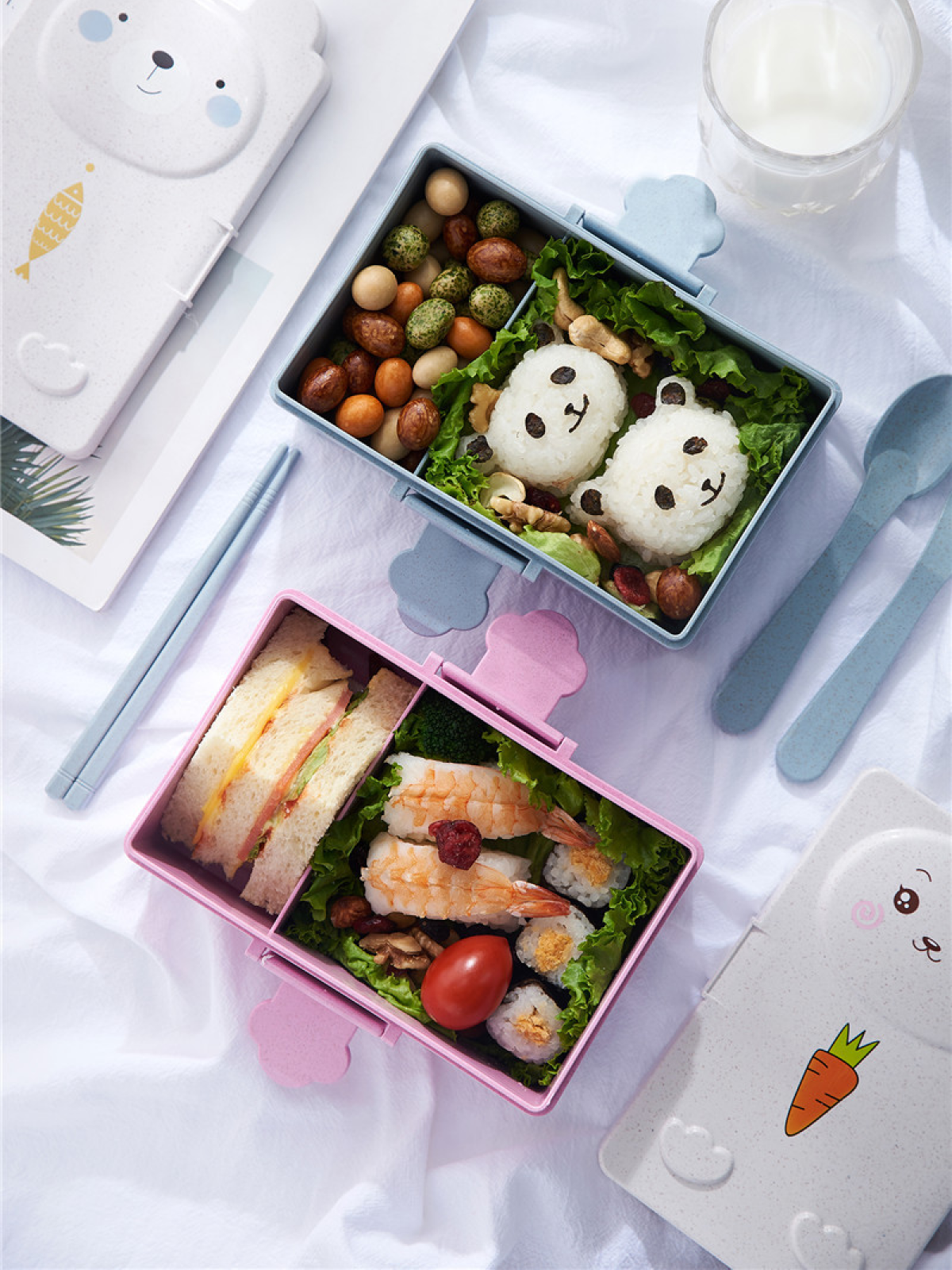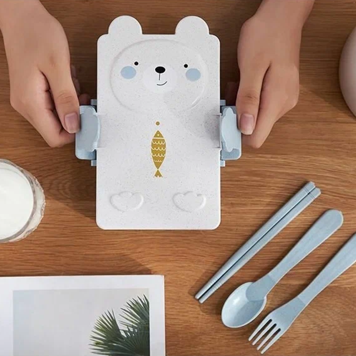 Детский ланч бокс для еды, в школу, с приборами, Зайчик