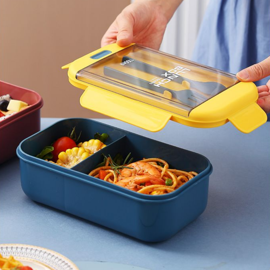 Купить Ланч-бокс, двухсекционный, с приборами, объем 1100 мл