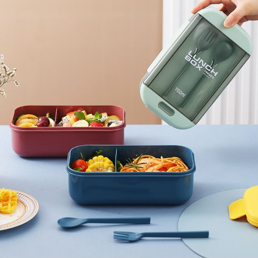 Купить Ланч-бокс с отделениями, приборами и крышкой с клапаном, объем 1100 мл