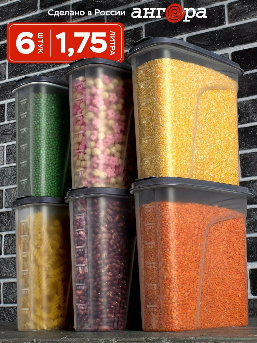 Контейнеры для круп банки для хранения сыпучих продуктов, с крышками, с мерной шкалой, прозрачные, набор 6 шт интересное: