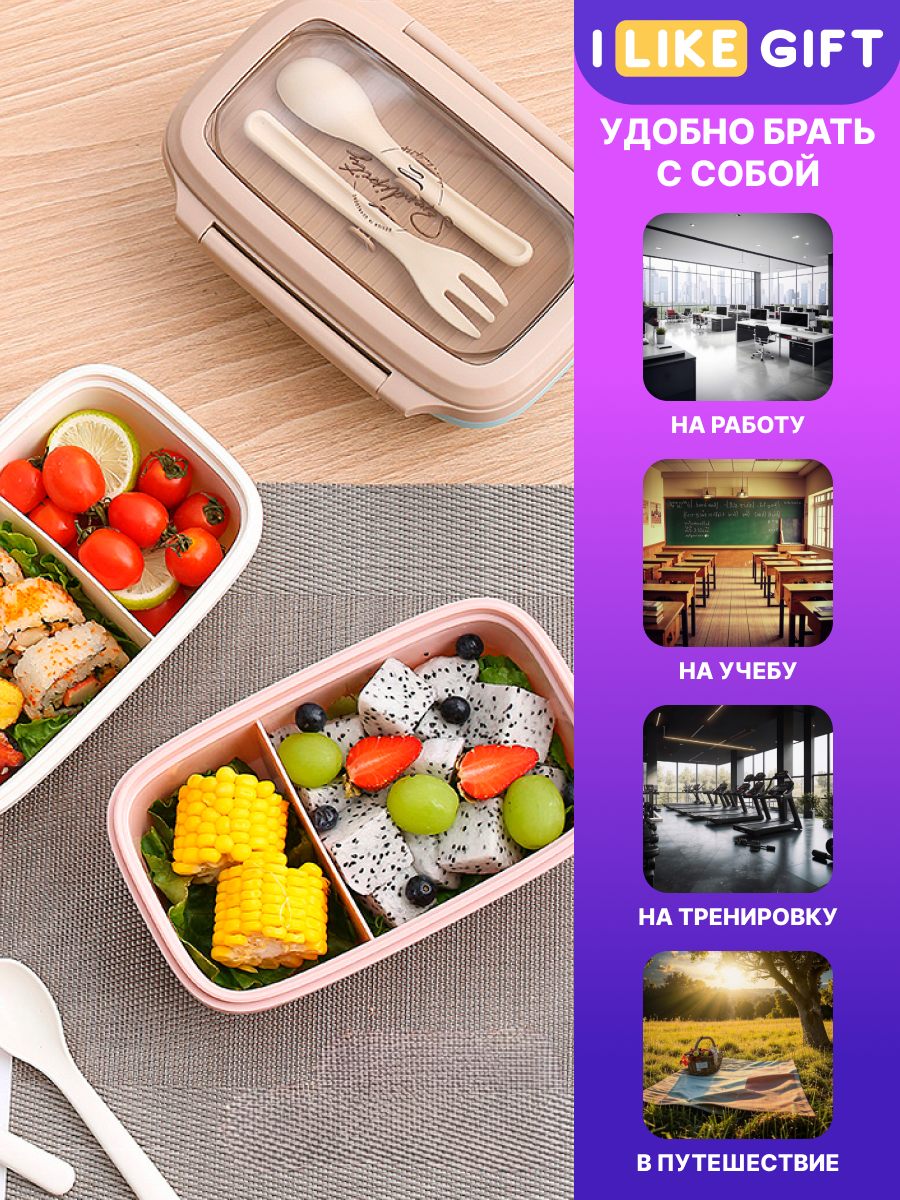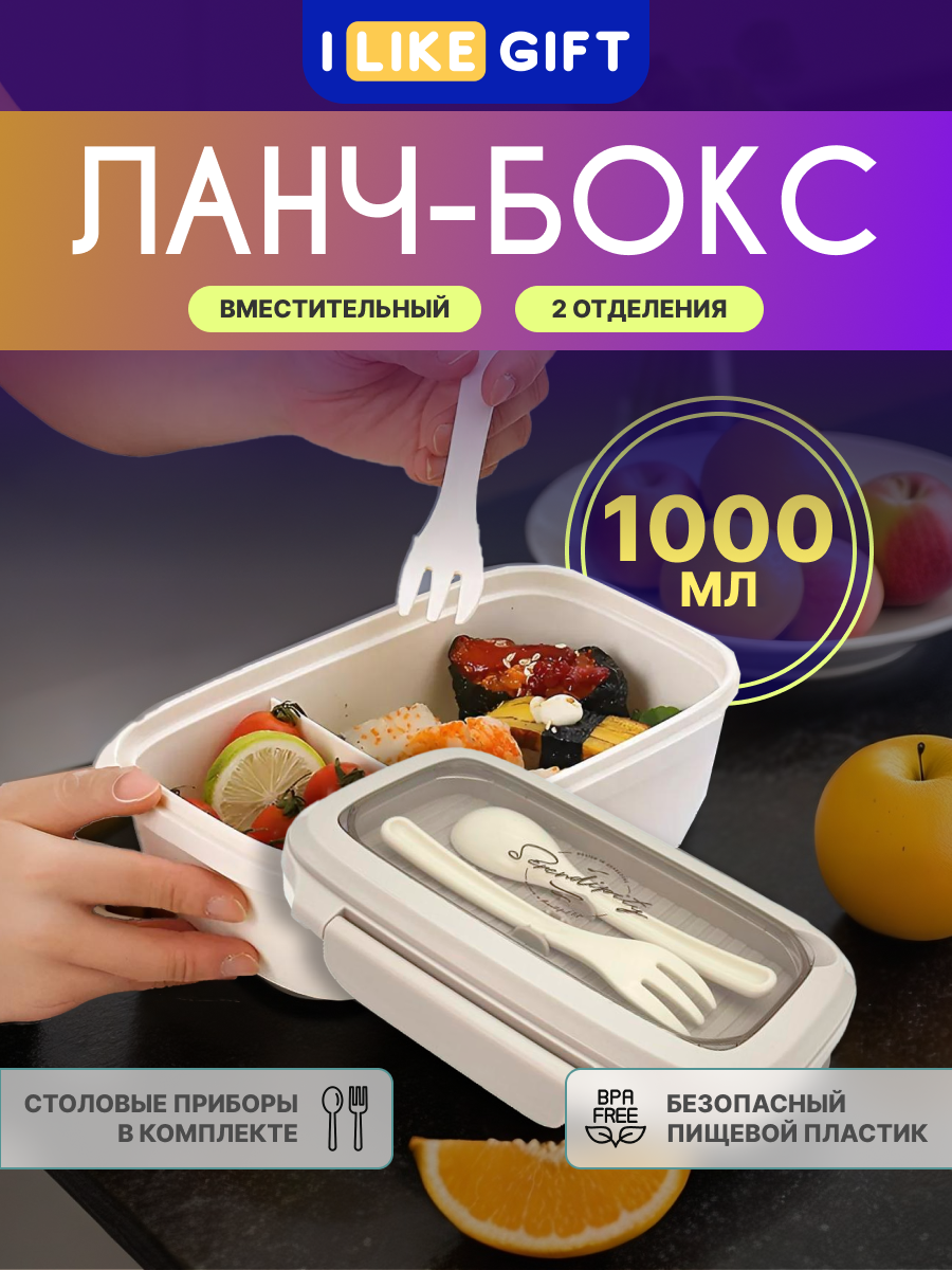 Ланч-бокс "Nude Set" для еды с приборами, контейнер секционный, пищевой пластик, 1000 мл интересное: