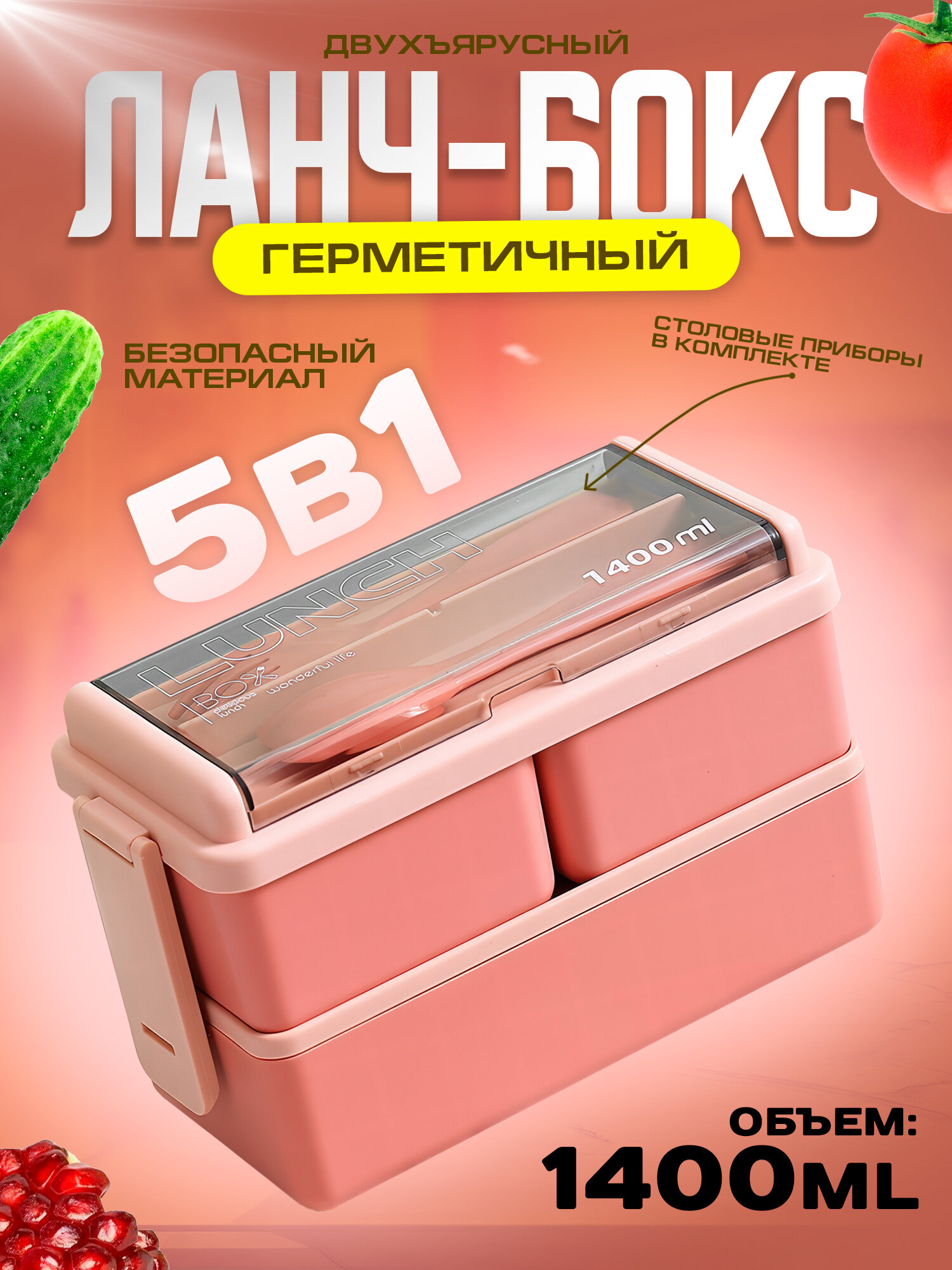 Герметичный пластиковый ланч-бокс с 3 отсеками 1400мл. (розовый) интересное: