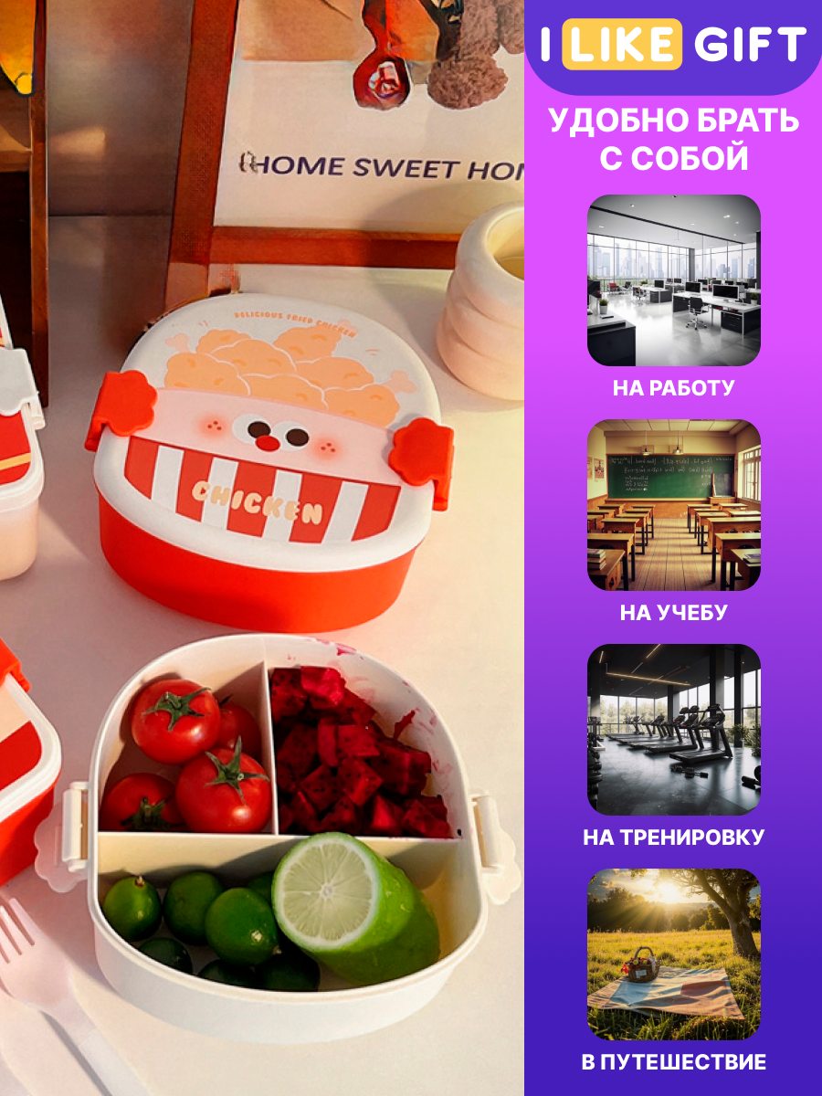 СохранитьЛанч бокс "Fast food" для еды секционный с приборами, пищевой пластик, 1350 мл интересное: