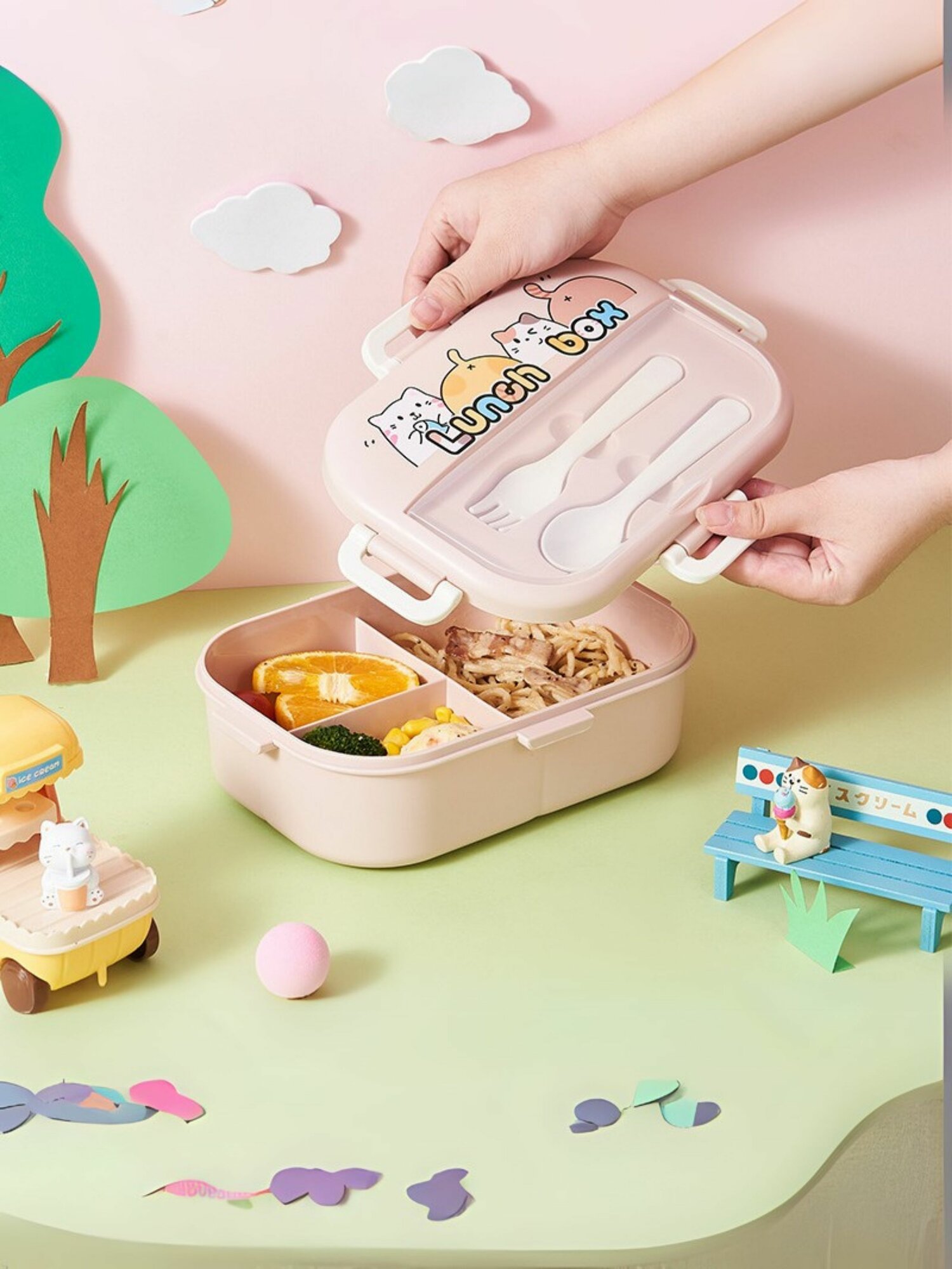 Ланч-бокс "Little cloud" для еды с отделениями и приборами, пищевой пластик, 800 мл