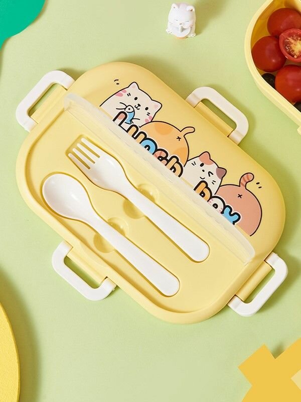 Купить Ланч бокс «Cat family» контейнер для еды с раздельными секциями, yellow, 1400 мл