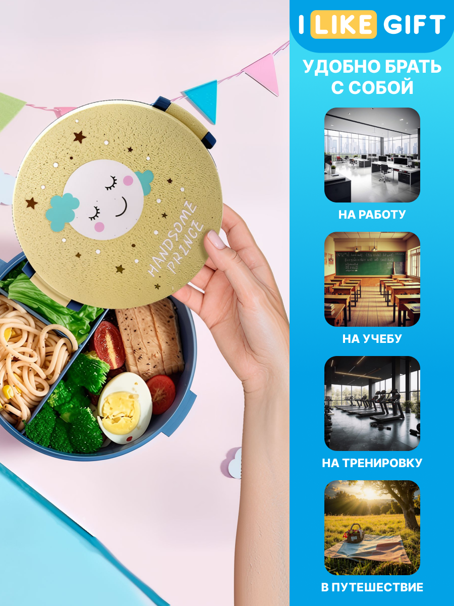 СохранитьЛанч бокс "Handsome prince" для еды, контейнер секционный с приборами, пищевой пластик, 1000 мл интересное: