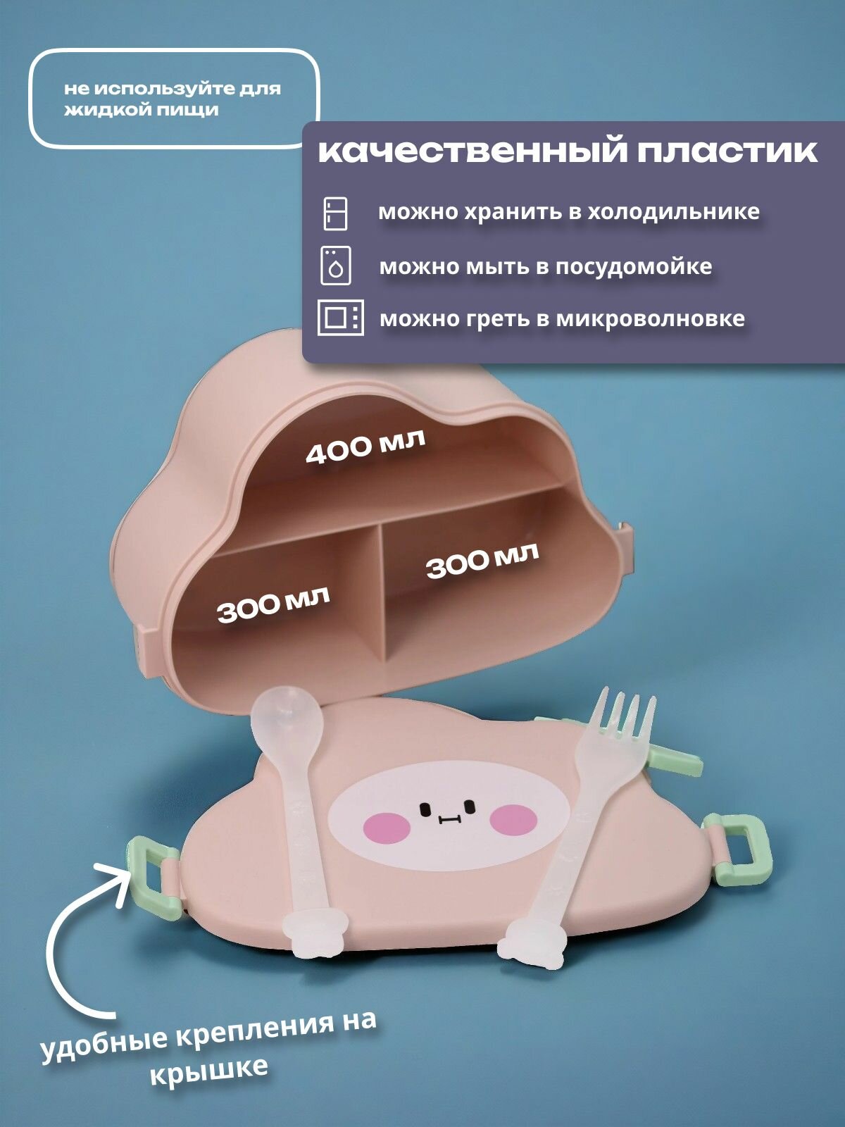 СохранитьЛанч-бокс "Little cloud" для еды с отделениями и приборами, пищевой пластик, 800 мл интересное:
