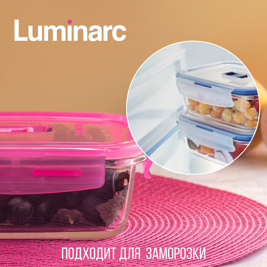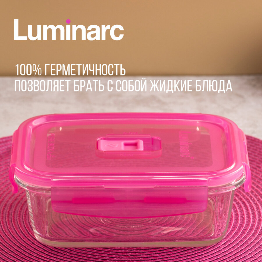 Контейнер для еды стеклянный LUMINARC пюрбокс актив неон розовый 820мл прямоугольный интересное:
