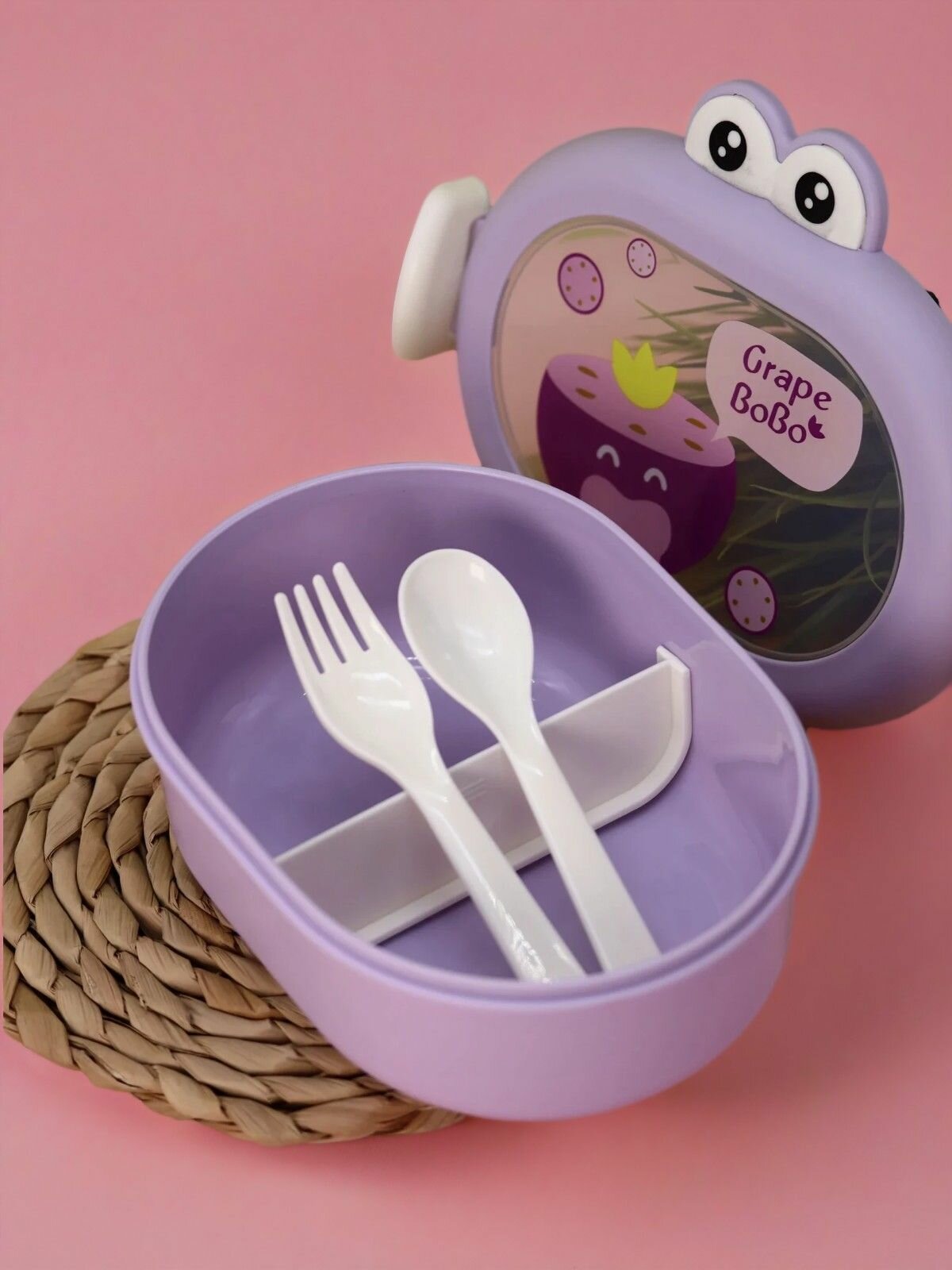 Купить Ланч бокс "Eyeball fruits" для еды, контейнер секционный с приборами, пищевой пластик, 1000 мл
