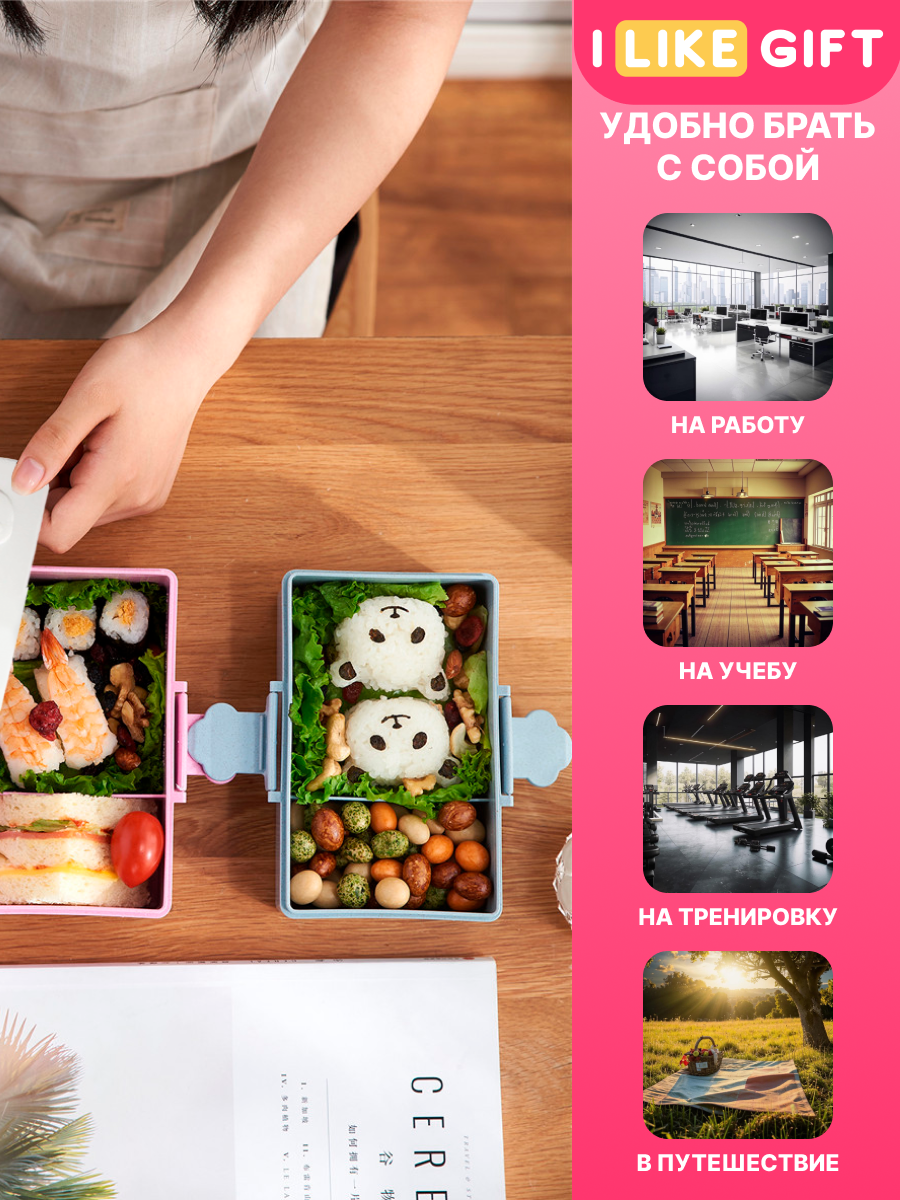 СохранитьЛанч бокс «Little sheep» для еды, контейнер секционный с приборами, пищевой пластик, 900 мл интересное: