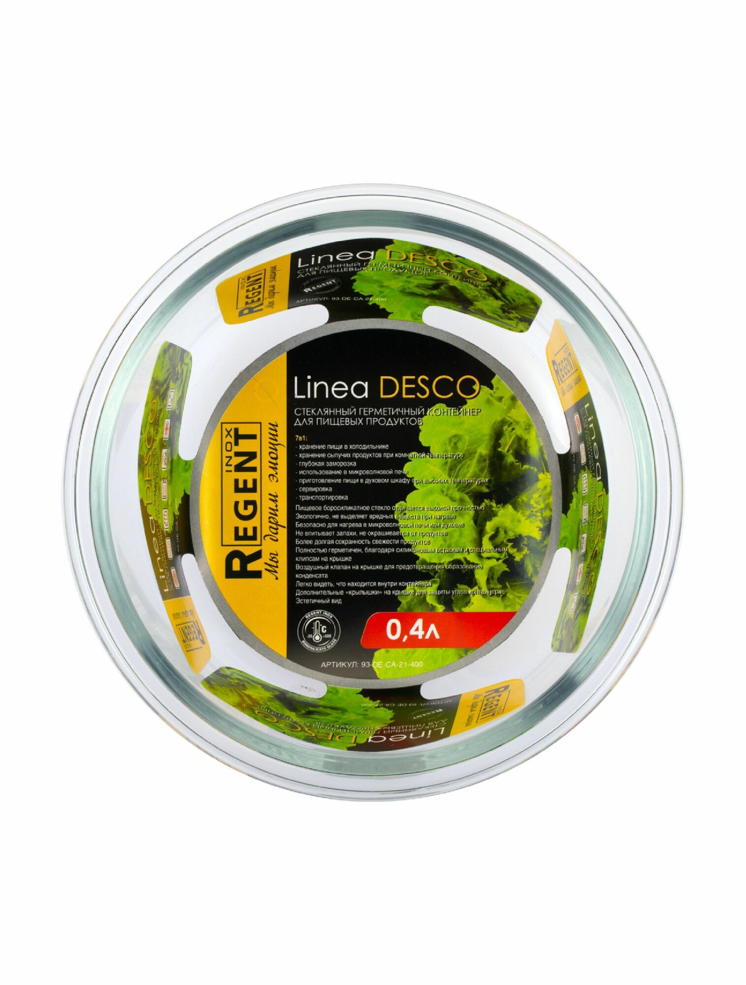 Купить Контейнер для еды Regent inox стеклянный, с крышкой для хранения продуктов, для запекания, ланч бокс 0,4 л, круглый