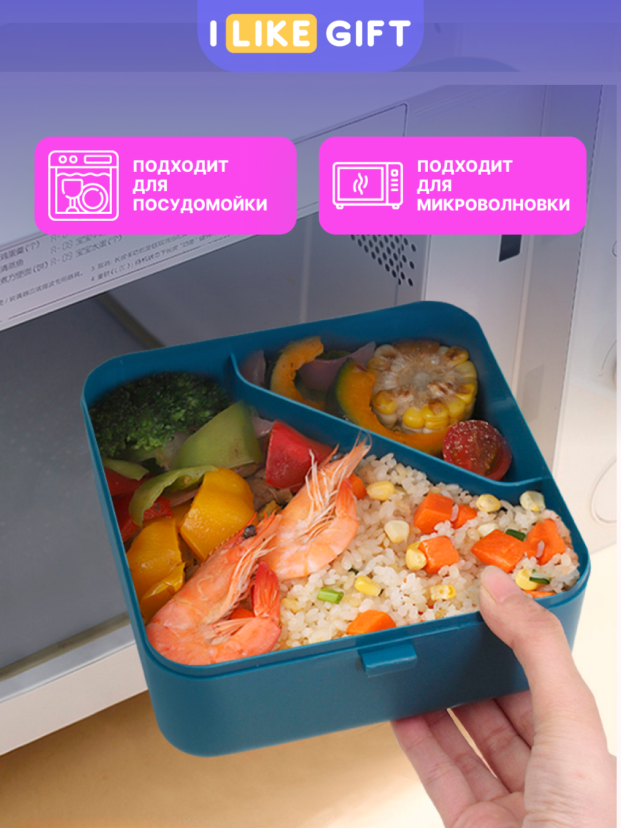 Ланч-бокс "Square" для еды с отделениями и приборами, пищевой пластик 1100 мл