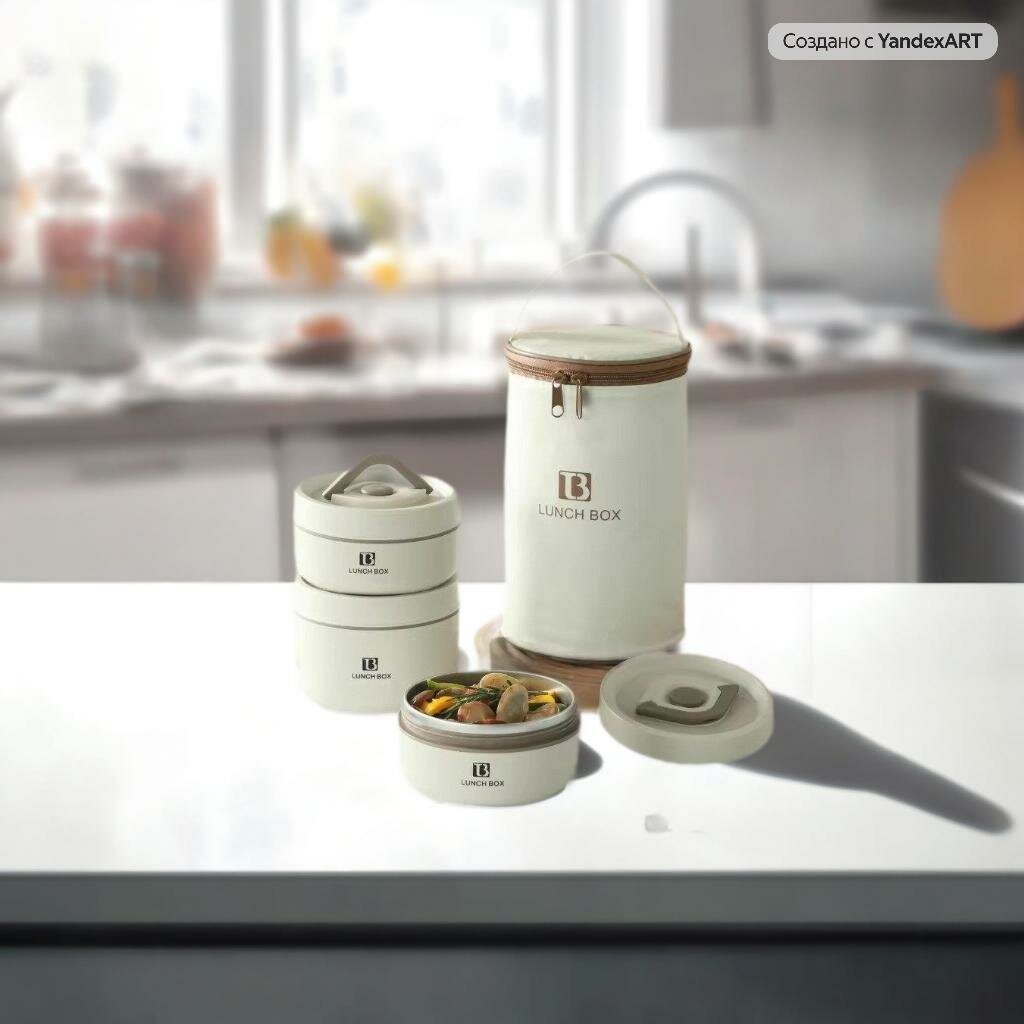 Ланчбокс с термосумкой. С увеличенным сроком сохранения тепла в термосе! Lunch-Box 3 термо-контейнера для еды, набор для супа-600мл+для второго-400мл+для салата-400мл. В школу на работу 1400 мл интересное: