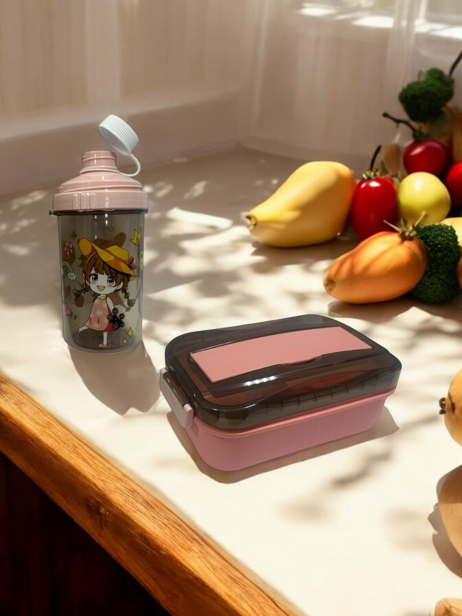 Ланч-бокс KWELT SmileBox Duo, пластик, герметичный, для СВЧ, розовый/светло-розовый
