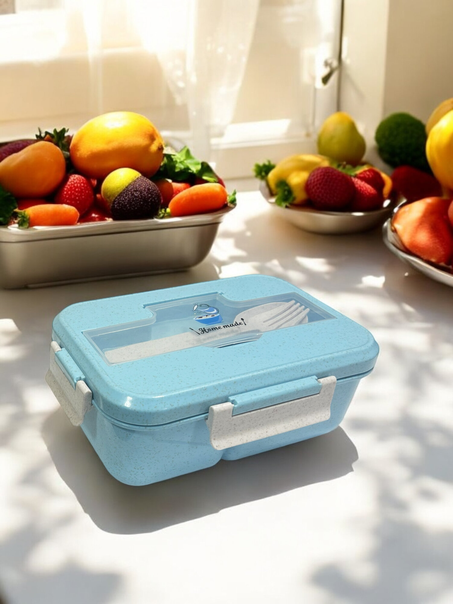 Ланч-бокс пластик, герметичный, с ложкой и вилкой на 3 отделения