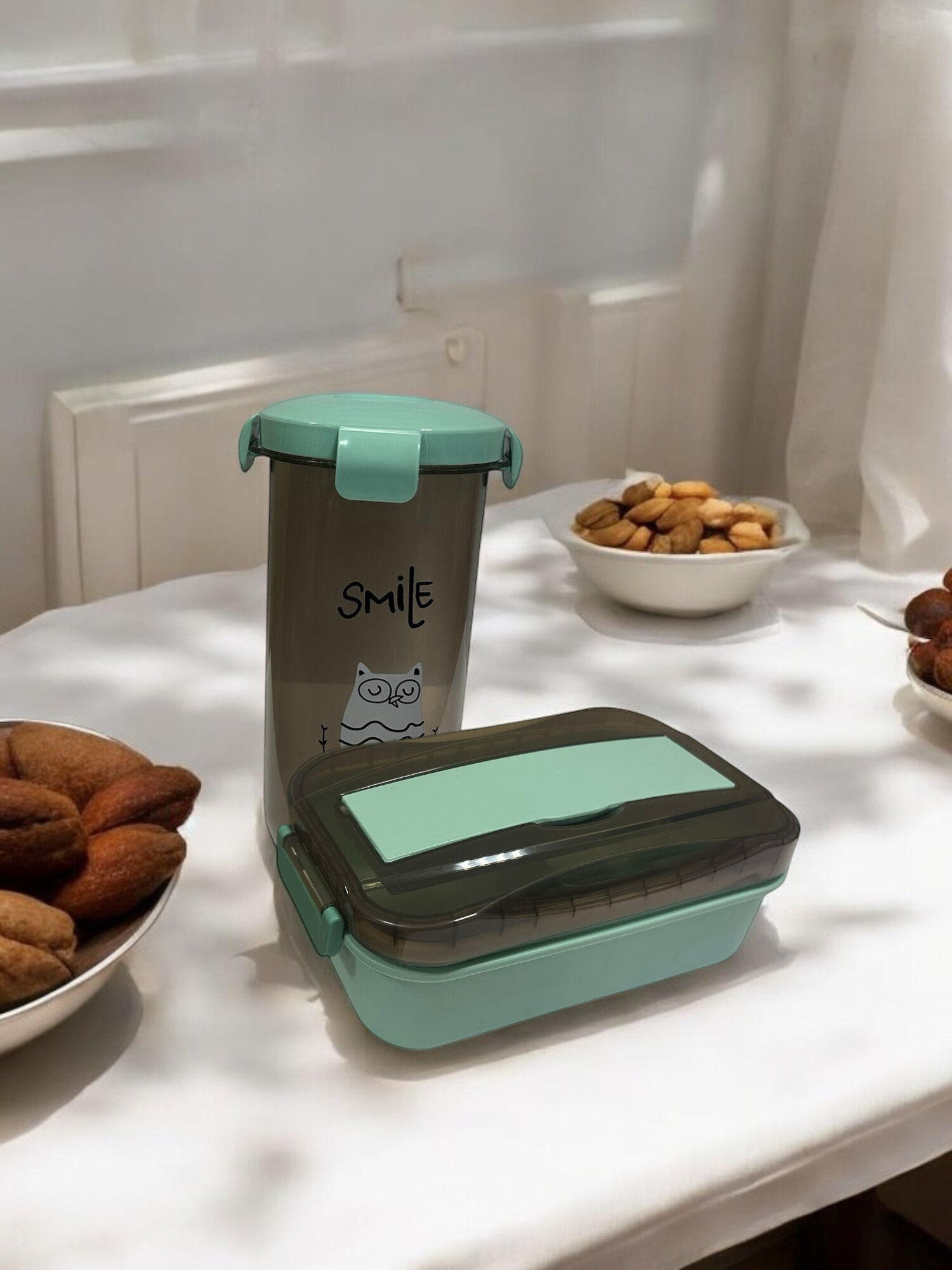 Купить Комбо-набор KWELT Smile in for Face, ланч-бокс 900мл, пластик, бирюзовый