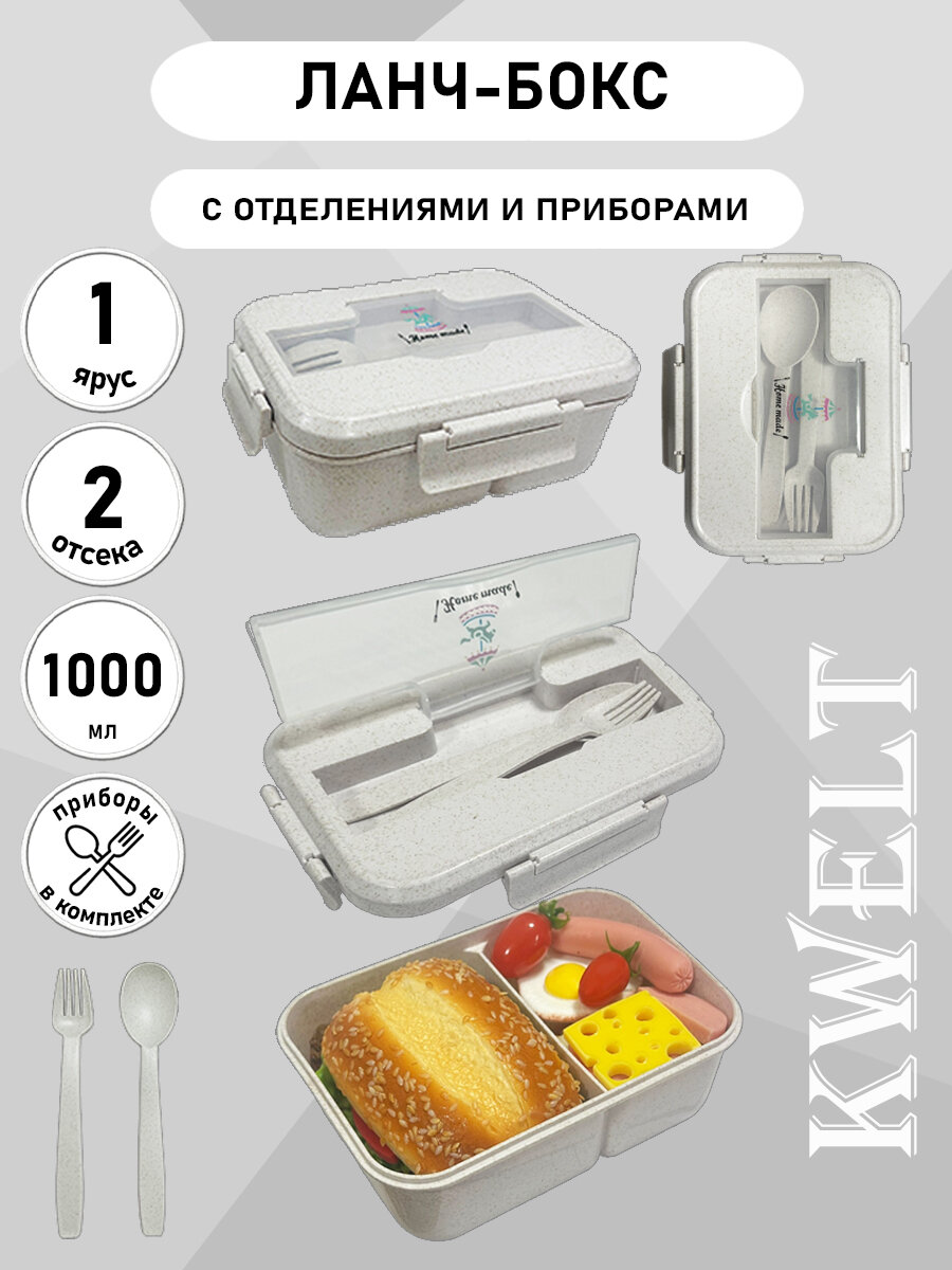 Купить Ланч-бокс KWELT "Home Made", 1000 мл, с вилкой и ложкой, герметичный