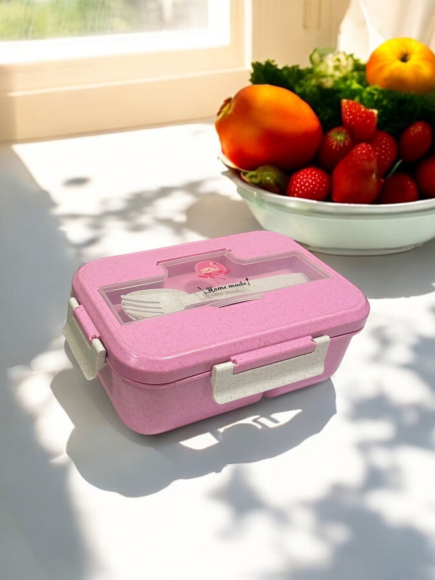 Ланч-бокс KWELT "Home Made", 2 в 1, 900 мл, с ложкой и вилкой, герметичный
