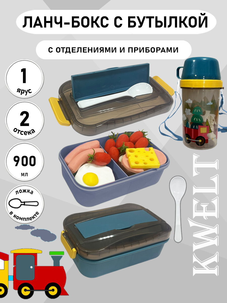 Комбо-набор KWELT Smile in for Face, ланч-бокс 900мл, пластик, бирюзовый