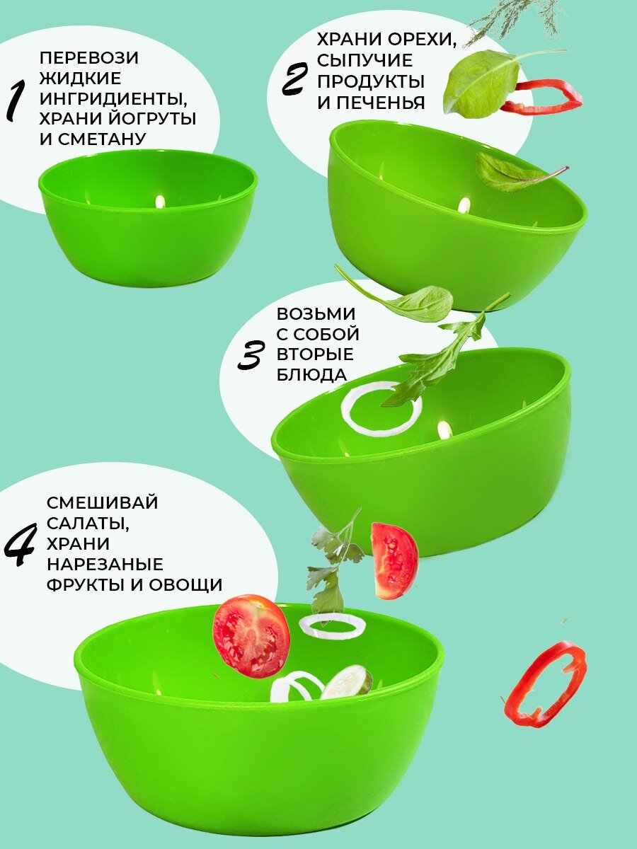 Набор контейнеров для еды и хранения продуктов 4 в 1, с крышкой, зеленый интересное: