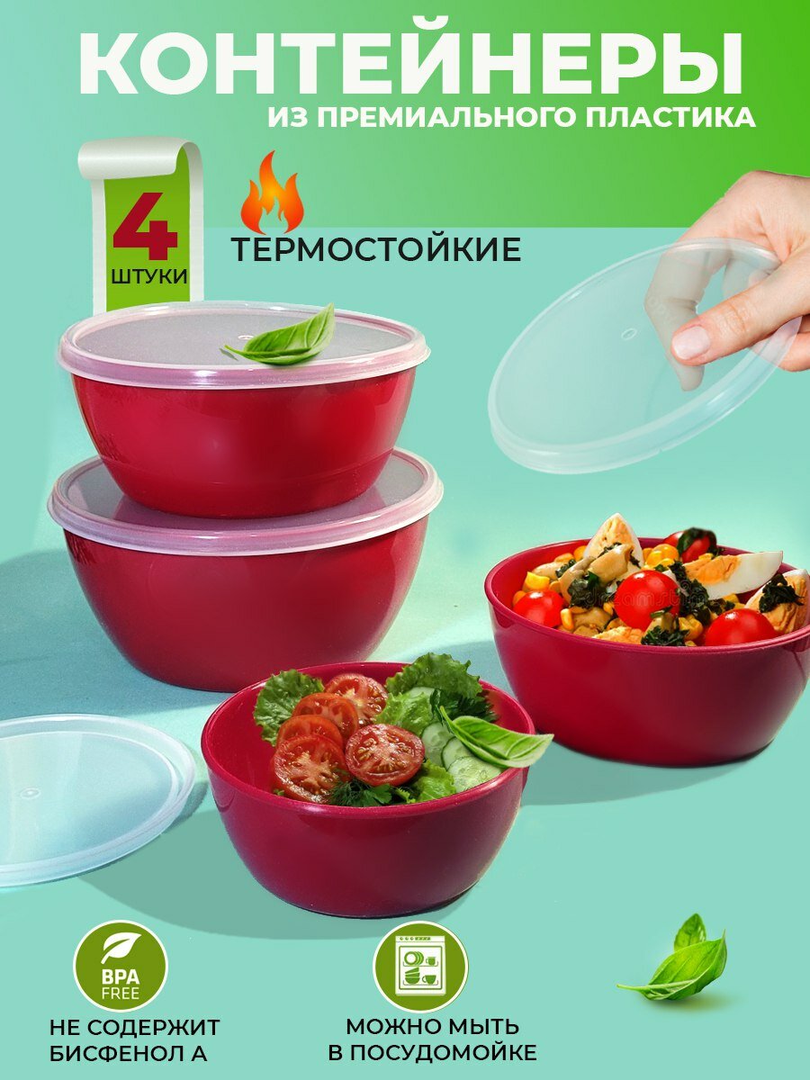 Купить Набор контейнеров для еды и хранения продуктов 4 в 1, с крышкой, красный