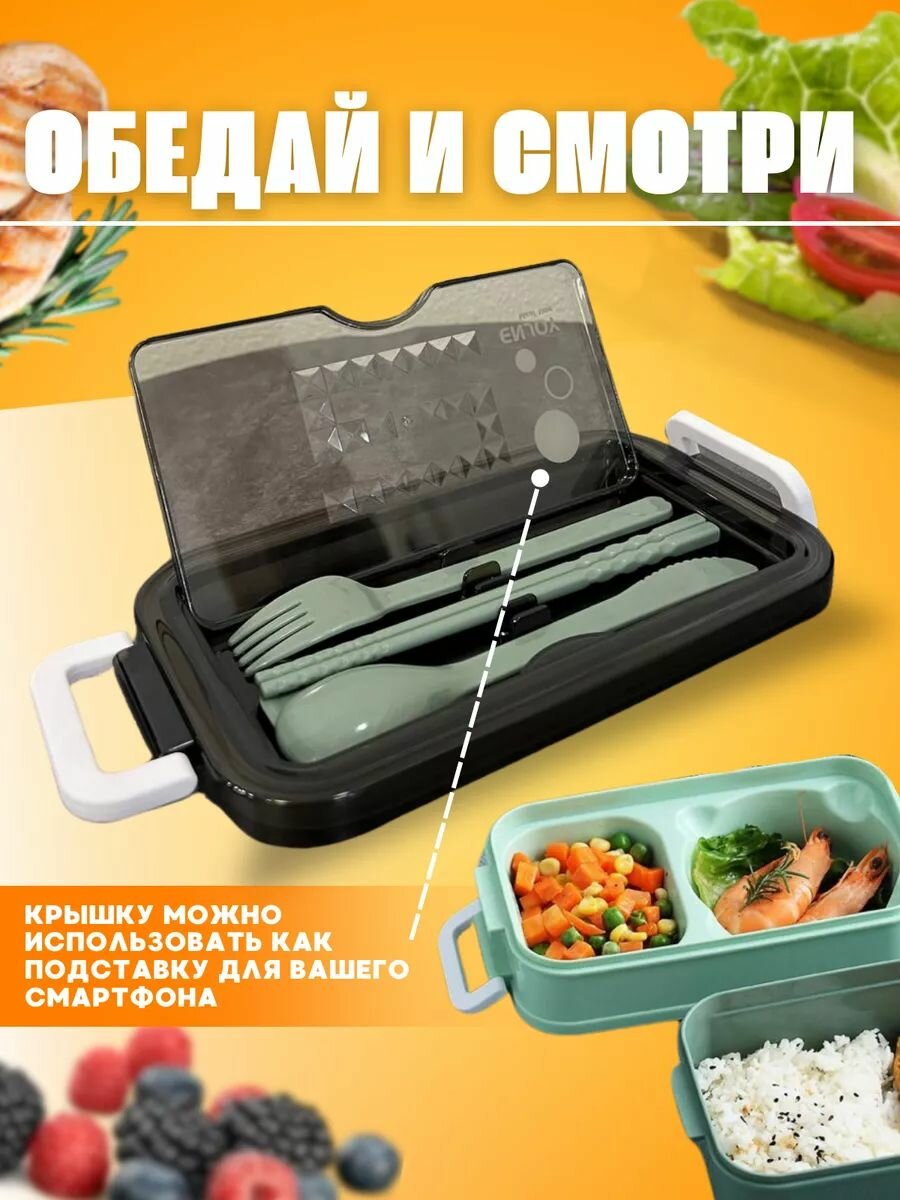 Контейнер для еды Don Pavlova, герметичный ланч бокс с 3-мя отделениями и приборами, 1400мл