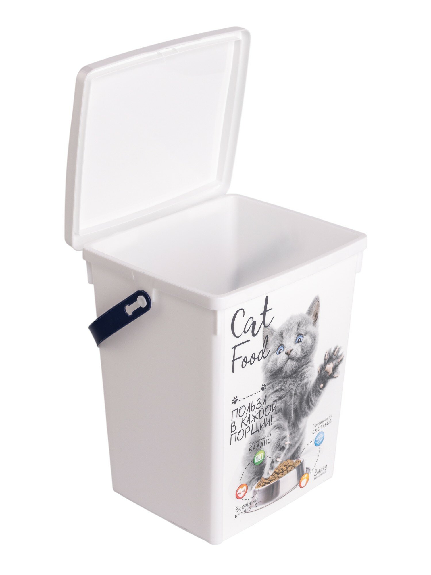 Контейнер для корма ПОЛИМЕРБЫТ "Кошки", пластик, белый, 8,5 литров