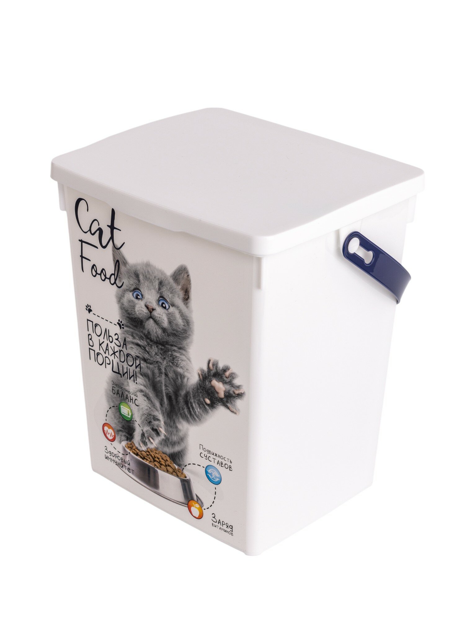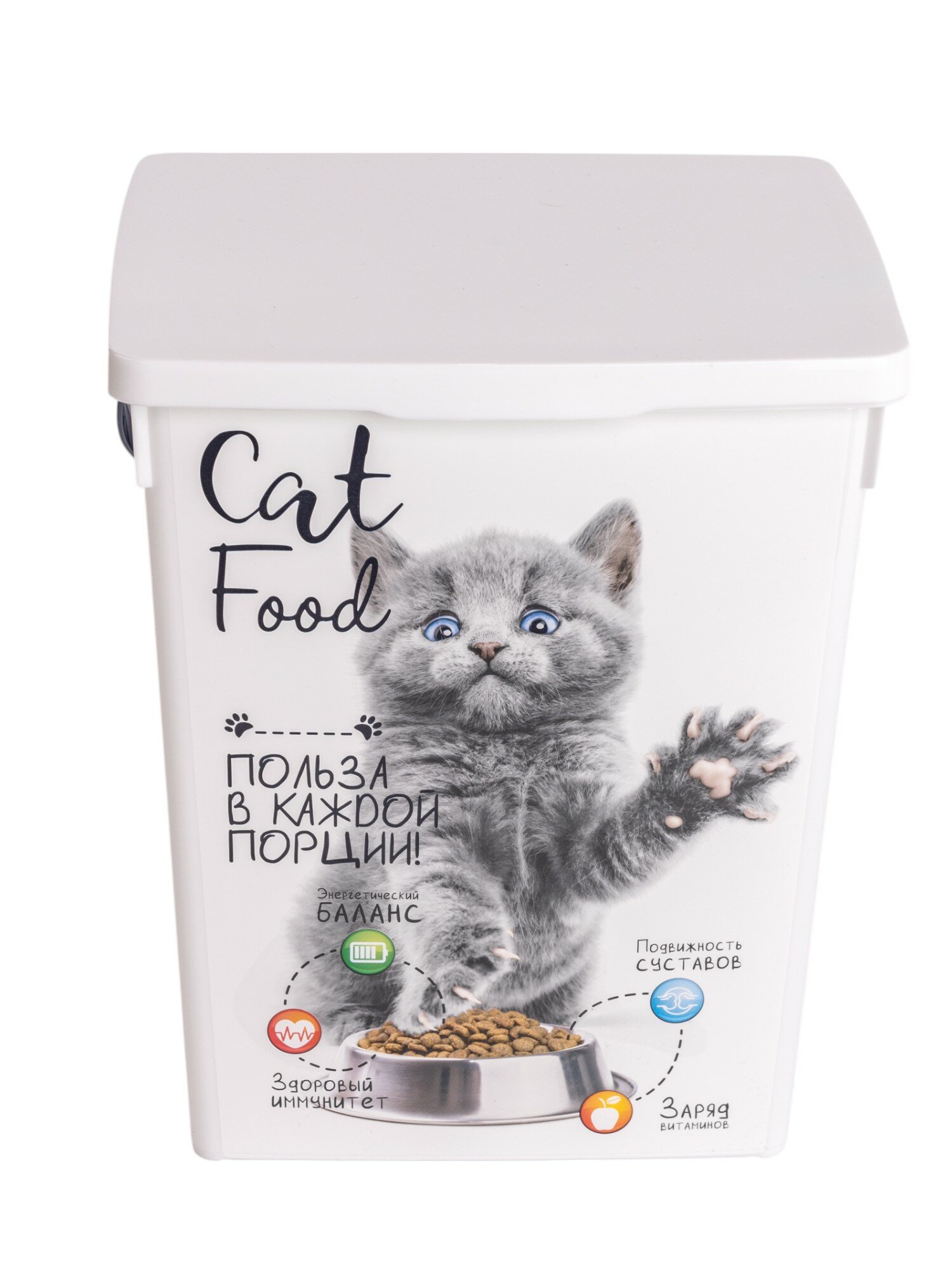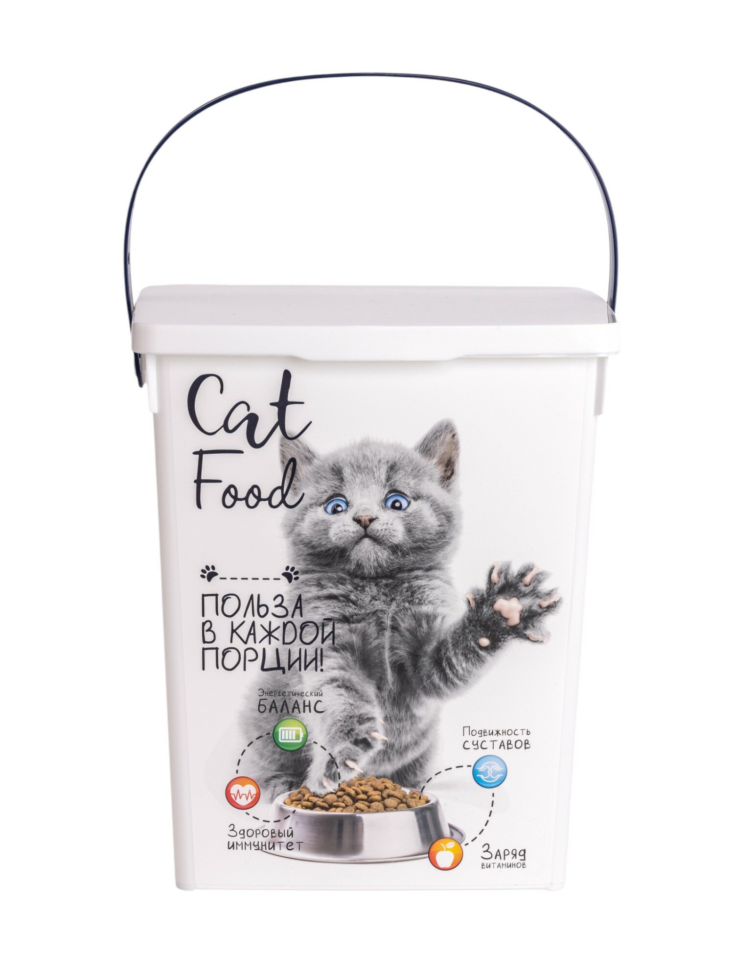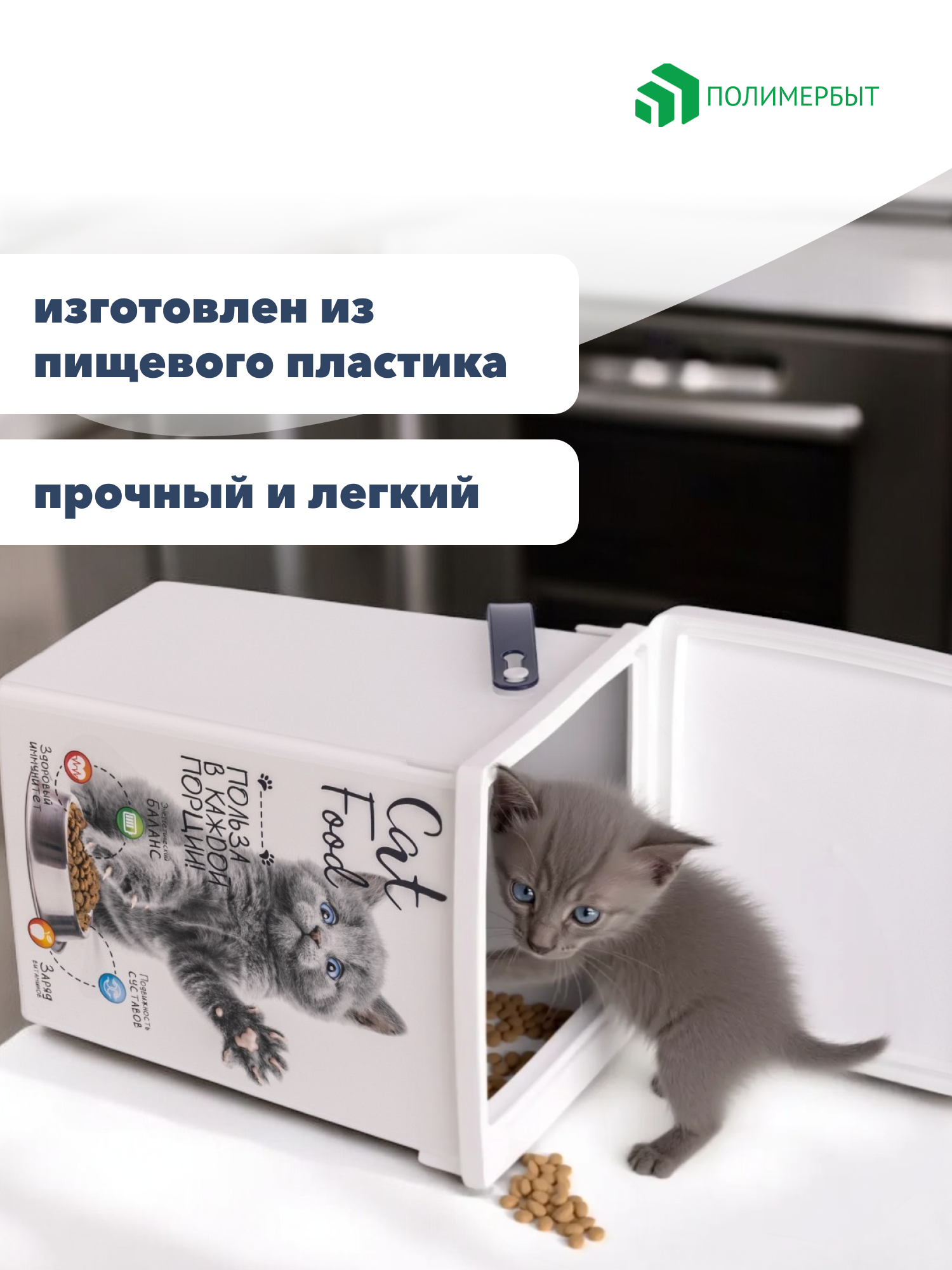 Контейнер для корма ПОЛИМЕРБЫТ "Кошки", пластик, белый, 5 литров интересное: