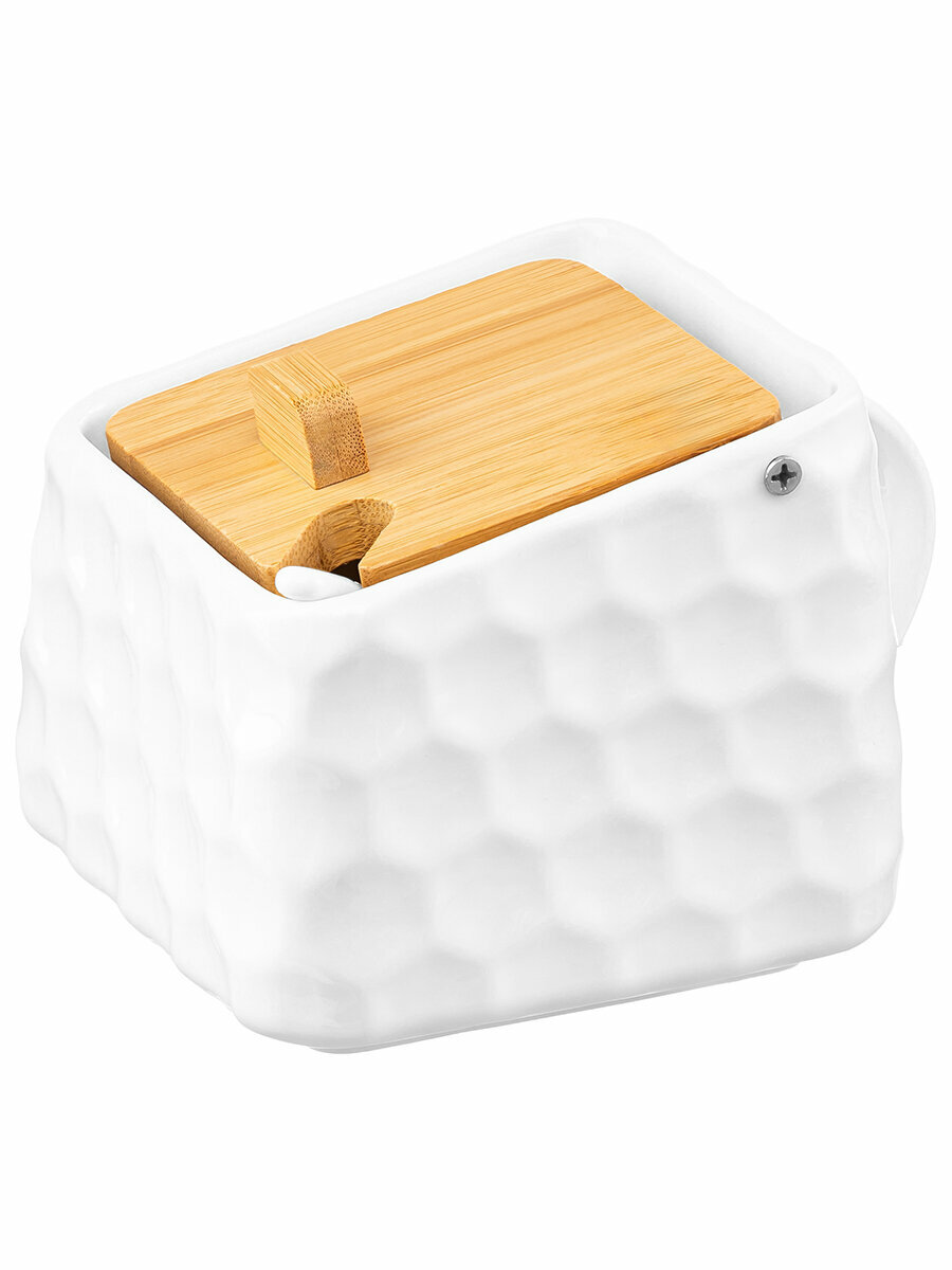 Купить Банка для хранения сыпучих продуктов, соли, специй, чая, кофе 750 мл Elan Gallery Соты + ложка + откидная крышка