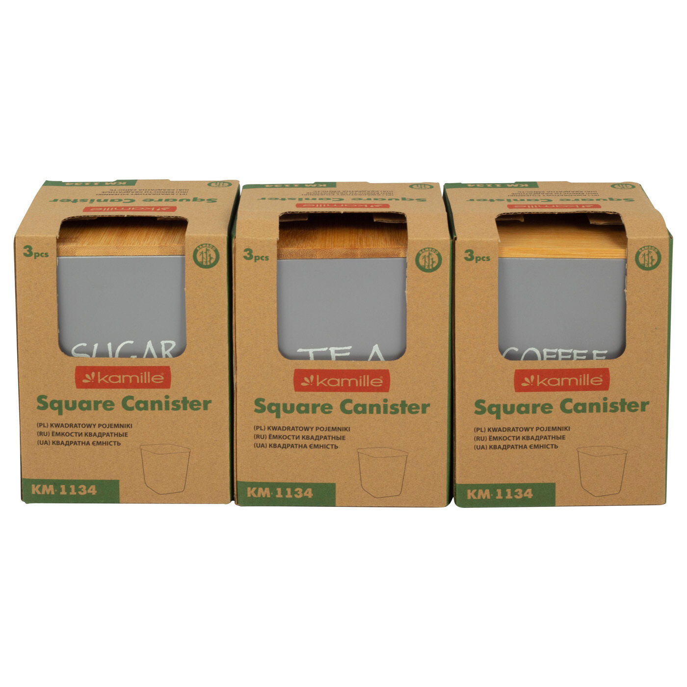 Купить Набор емкостей для сыпучих продуктов 3 шт. Kamille KM 1134 из бамбукового волокна с крышками (серый)