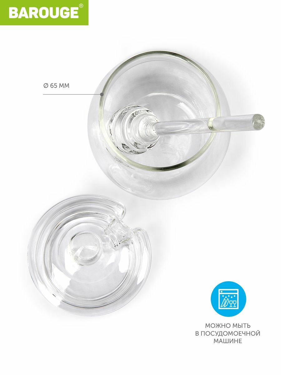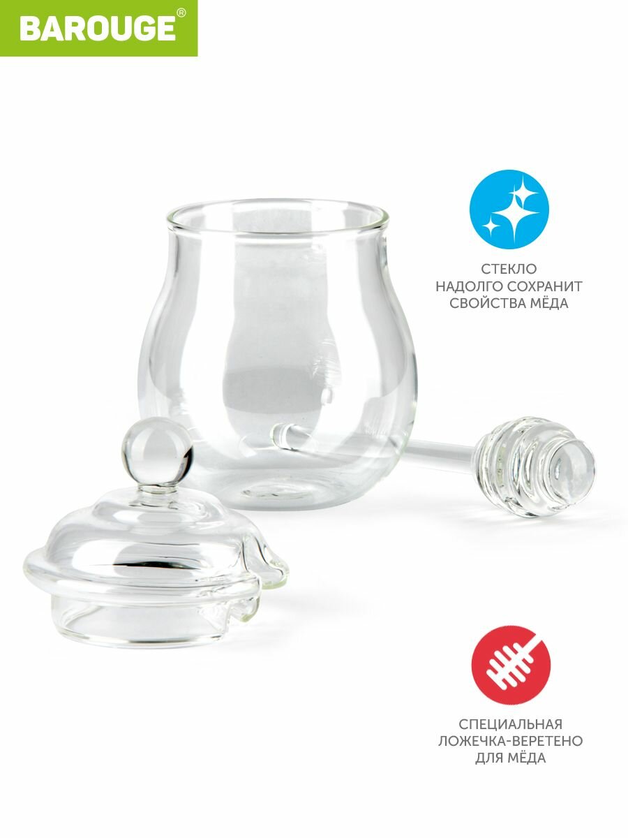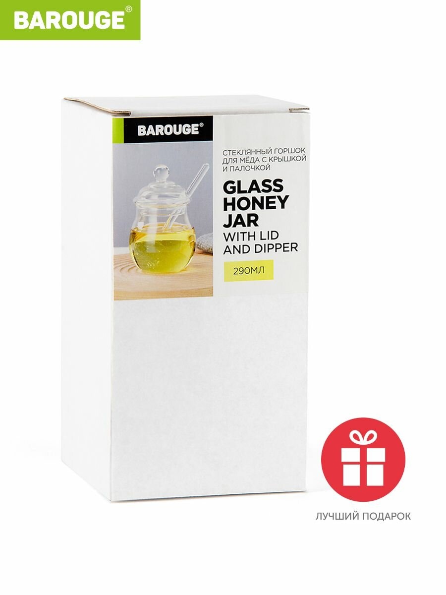 Банка для меда Barouge стеклянная с крышкой и палочкой, 290 мл интересное: