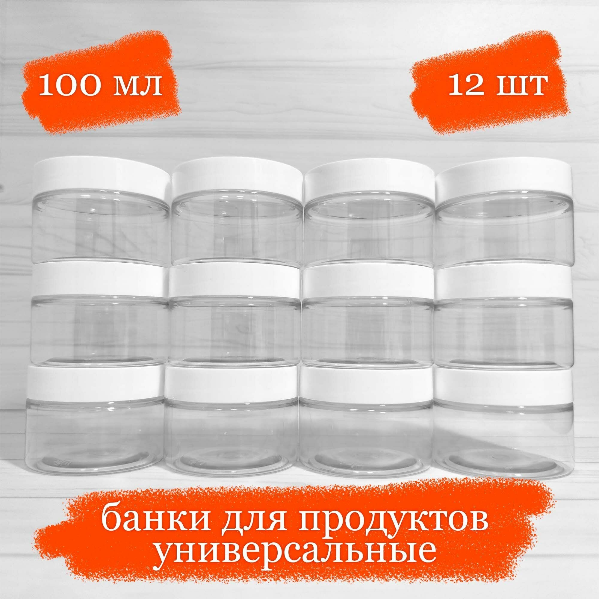 Банки пластиковые для продуктов универсальные с белой крышкой - 100 мл - 12 шт интересное: