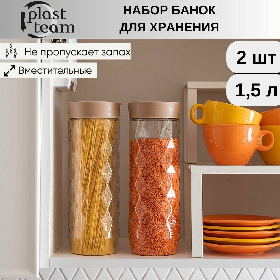 Купить Банка для сыпучих продуктов 2шт по 1,5л (ДхШхВ) 10х10х27см банка для продуктов контейнер для хранения сыпучих продуктов