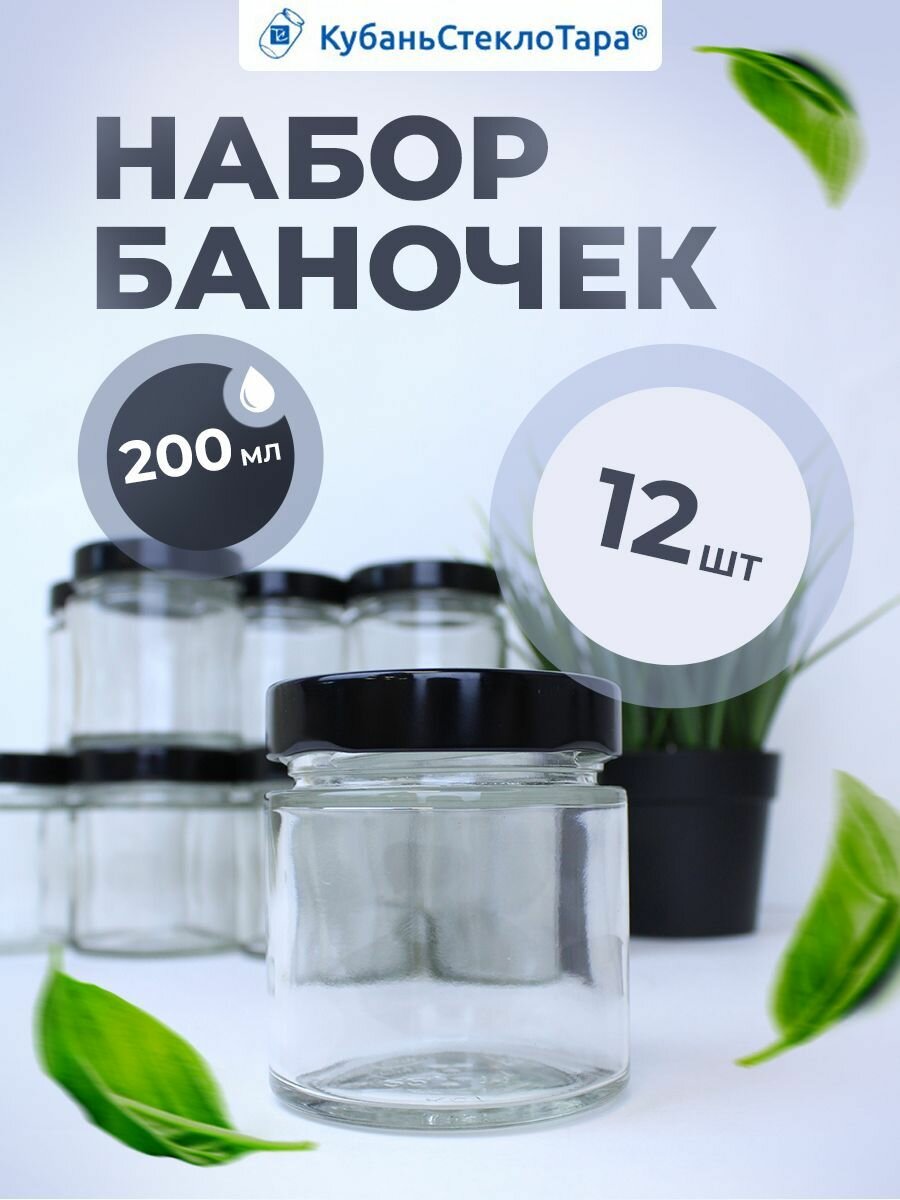 Набор баночек Твист (66) 0,200 deep прозрачная черная (12шт) интересное:
