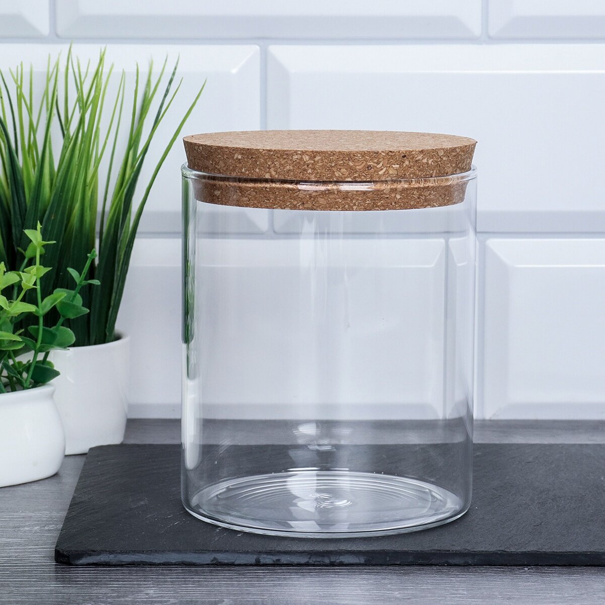 Банка для хранения сыпучих продуктов 840 мл, 13,3х10 см, пробковая крышка, стекло интересное: