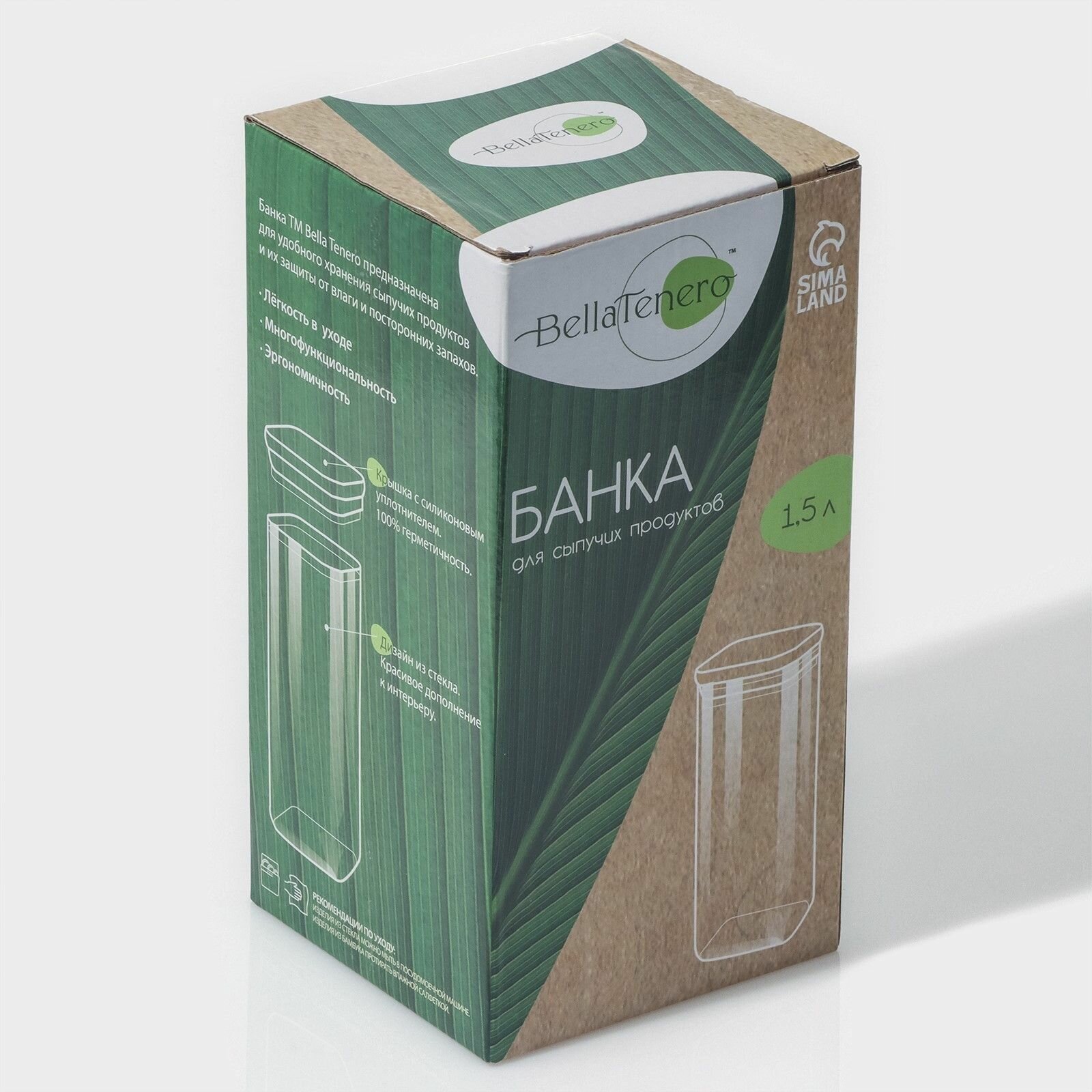 Купить Банка стеклянная для хранения сыпучих продуктов BellaTenero Эко. Квадратная , 1,5 л, 10 21 см, с бамбуковой крышкой