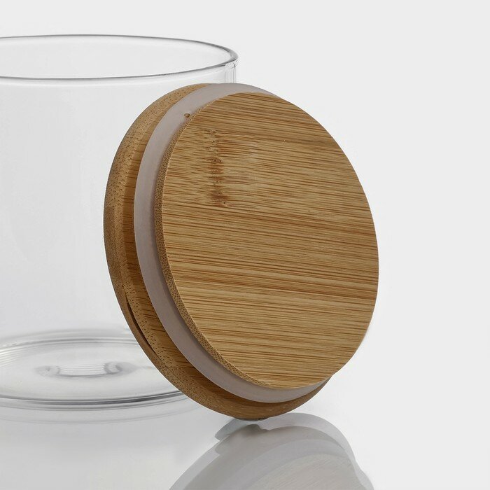 Банка для хранения "Эко", 550 мл, 8.5x12.5 см, с бамбуковой крышкой, стекло