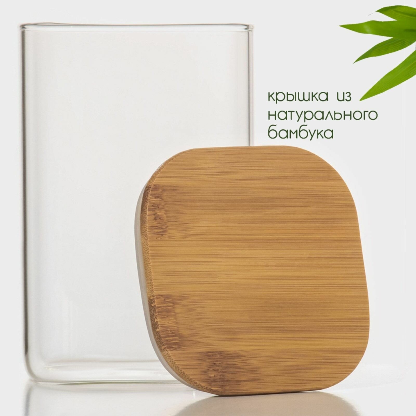 Купить Банка стеклянная для сыпучих продуктов с бамбуковой крышкой BellaTenero Эко. Квадратная , 1,2 л, 10 15,5 см