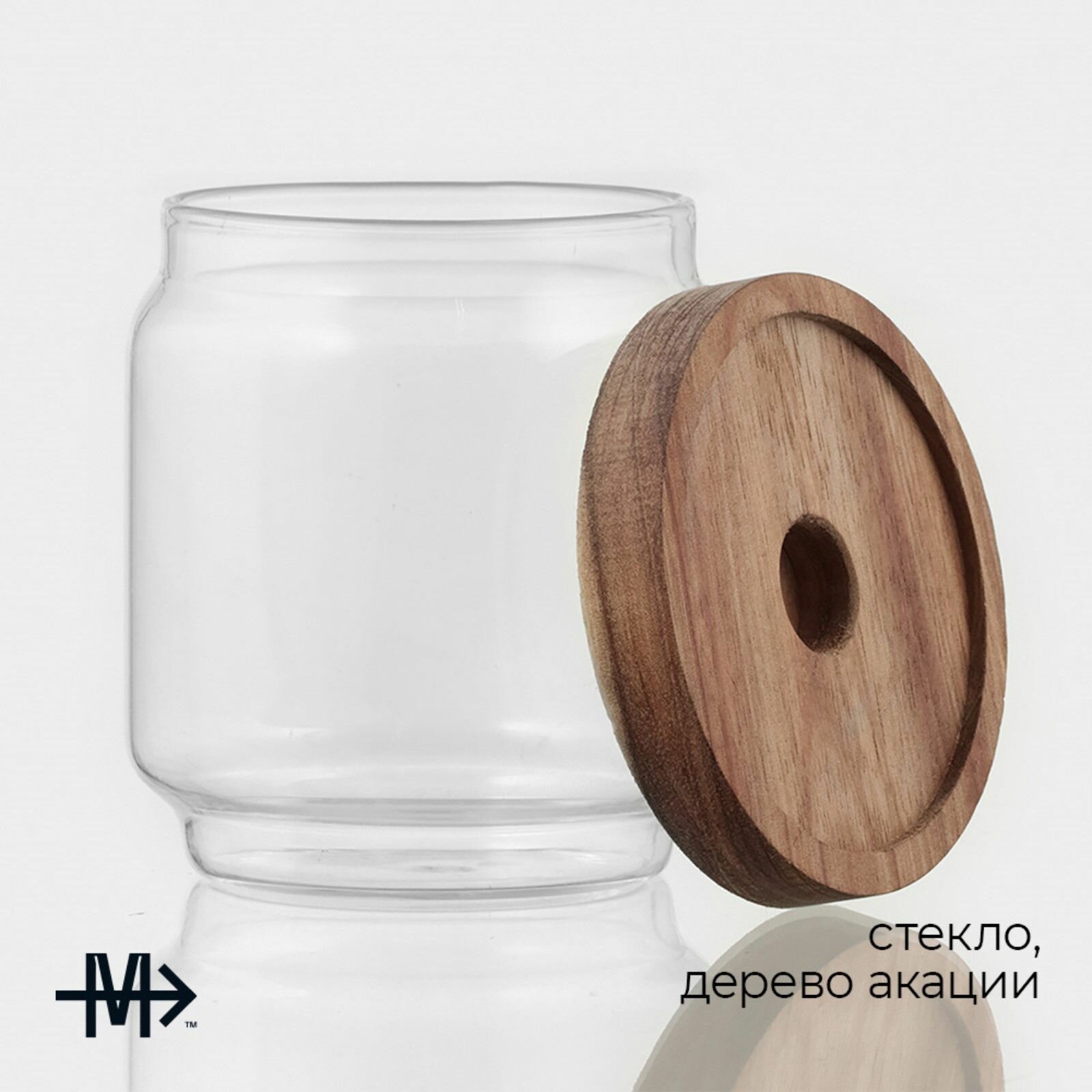 Банка стеклянная для сыпучих продуктов с деревянной крышкой Magistro Village, 700 мл, 9×15 см