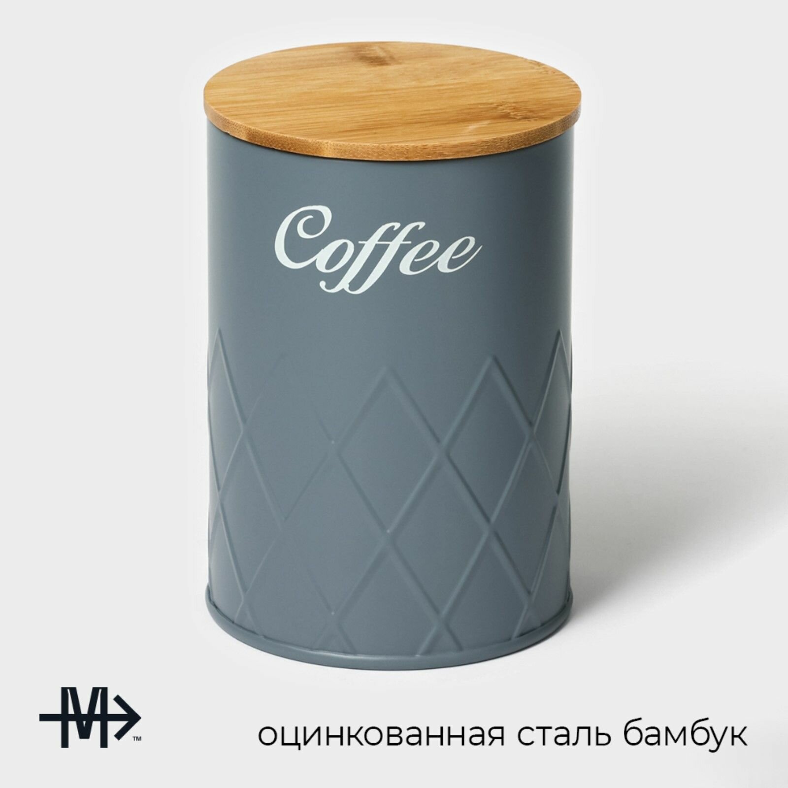 Купить Банка для кофе Magistro Coffee Graphite, 9,5 13,5 см, цвет серый, с бамбуковой крышкой