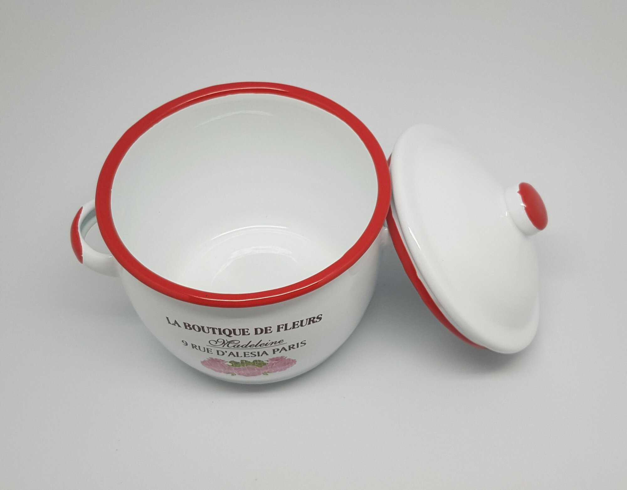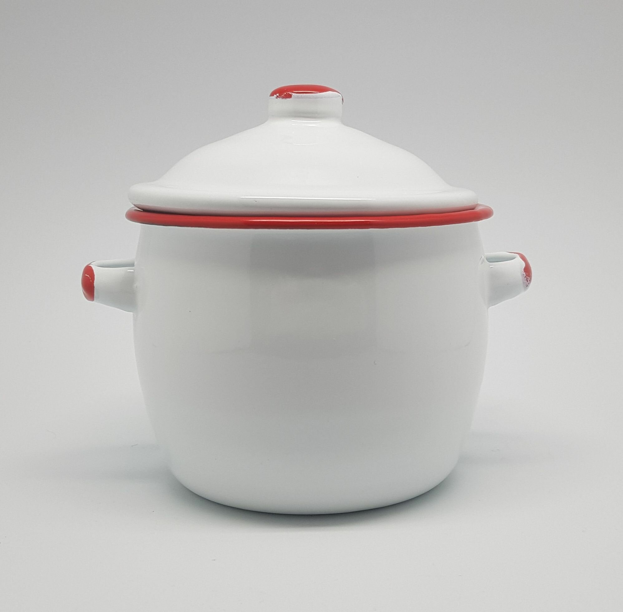 Купить Банка для хранения , с крышкой, белая/красная, эмалированная, 1 л