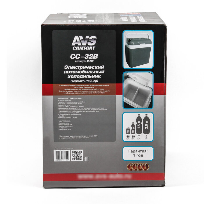 Холодильник автомобильный с функцией подогрева AVS CC-32B, 32 л, 12 В/220 В AVS 3779899 .