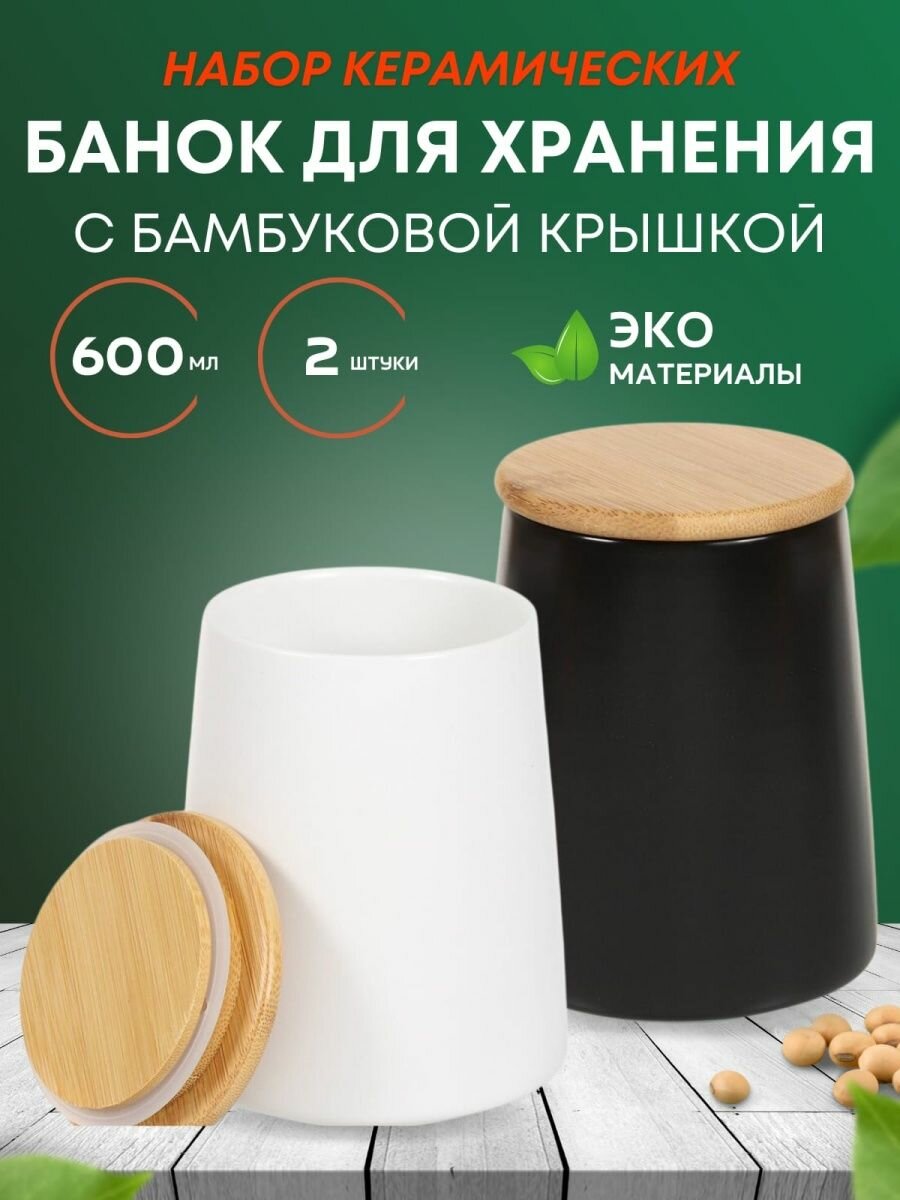 Керамическая банка с бамбуковой крышкой 600 мл, Емкость для специй 2 штуки интересное: