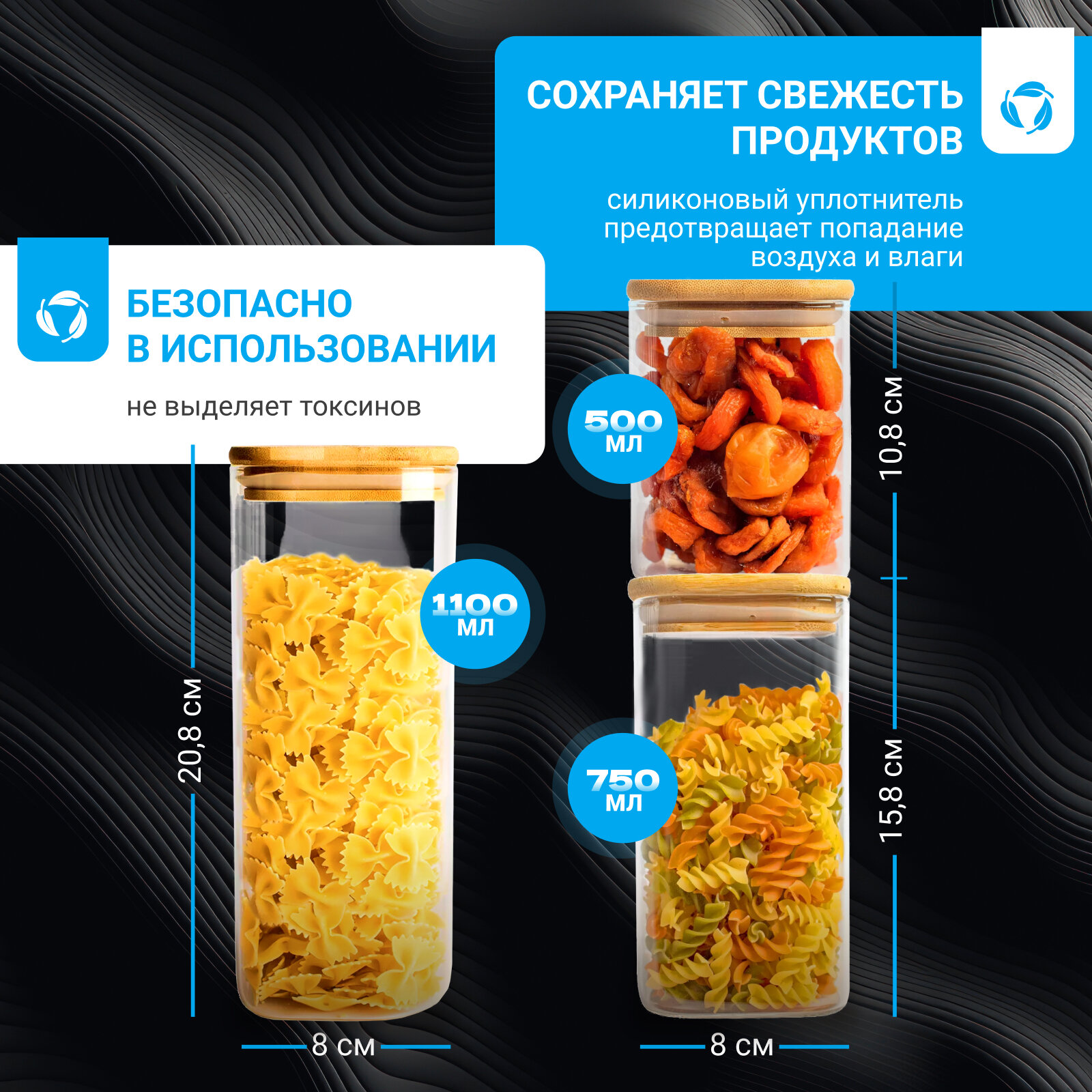 Купить Банки для сыпучих продуктов стекло, 3 шт.