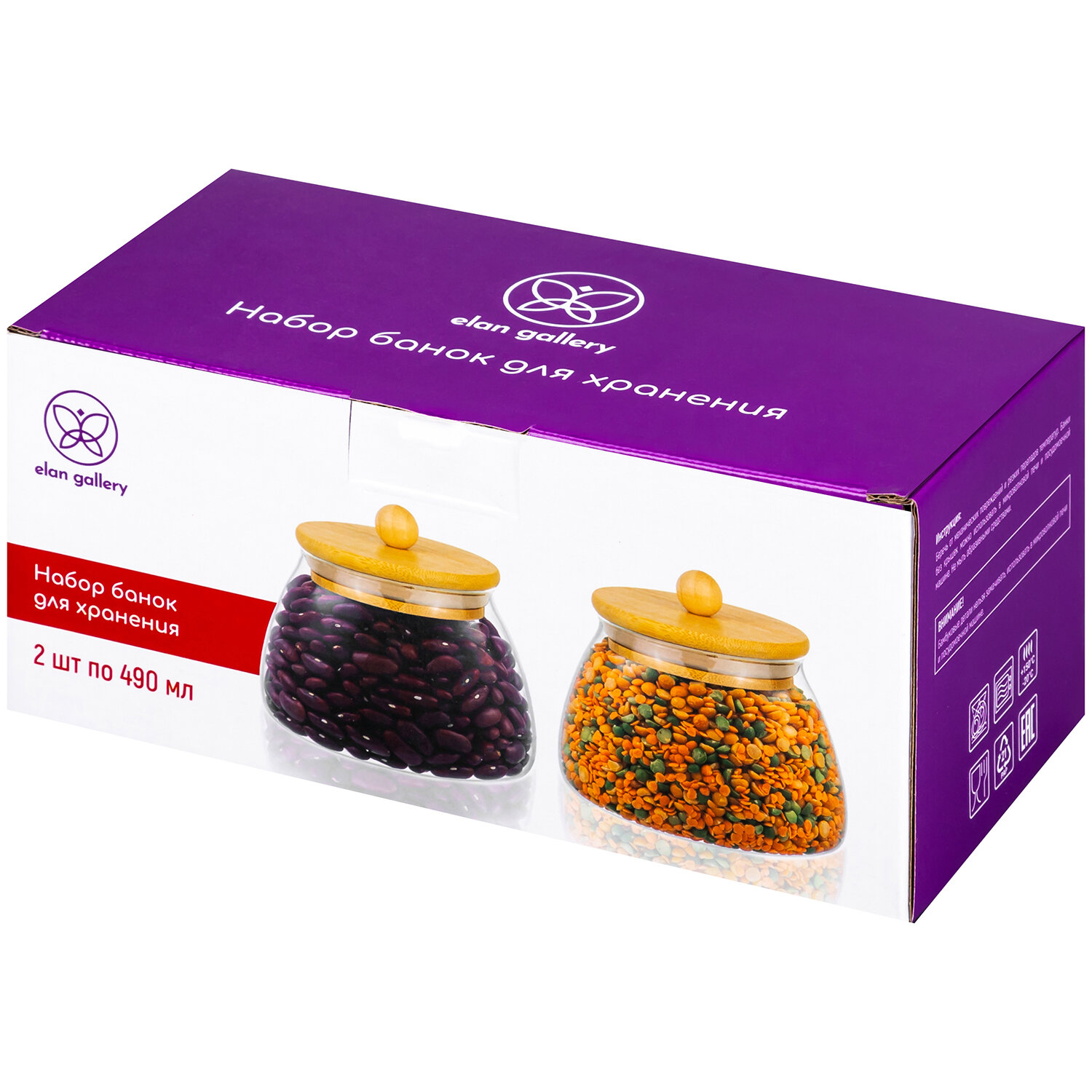 Купить Набор 2 банок для хранения 490 мл 11,5*11,5*10,5 см "Crystal glass"+ бамбук. крыш. с сил. проклад, стекло
