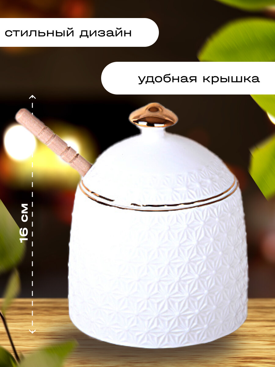 Банка для меда 380 мл медовница с бамбуковой ложкой Снежная королева интересное: