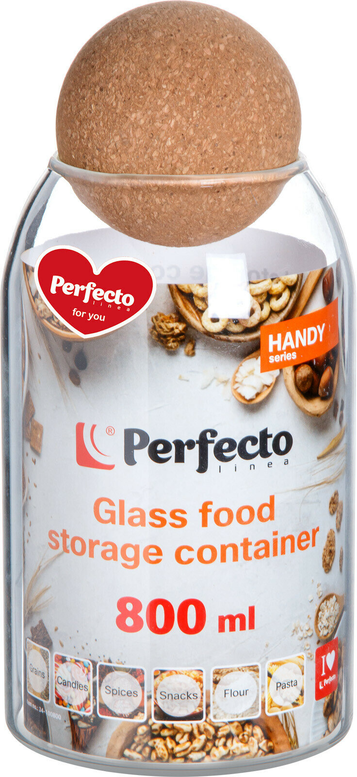 Банка стеклянная для сыпучих продуктов PERFECTO LINEA Handy 800 мл (34-102800)