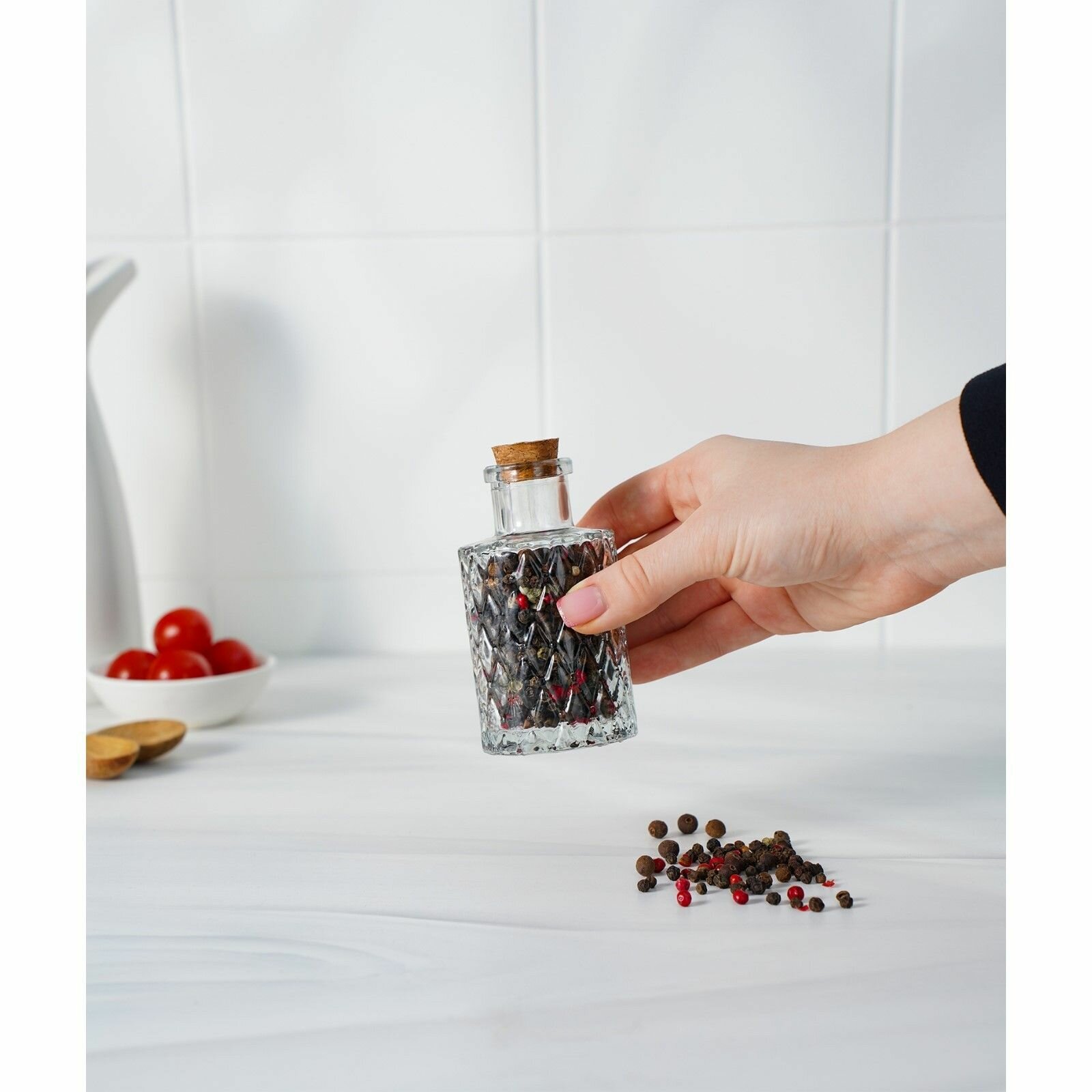 Купить Баночка стеклянная для специй с пробковой крышкой Доляна "Парфе. Ажур", 100 мл, 10х5 см