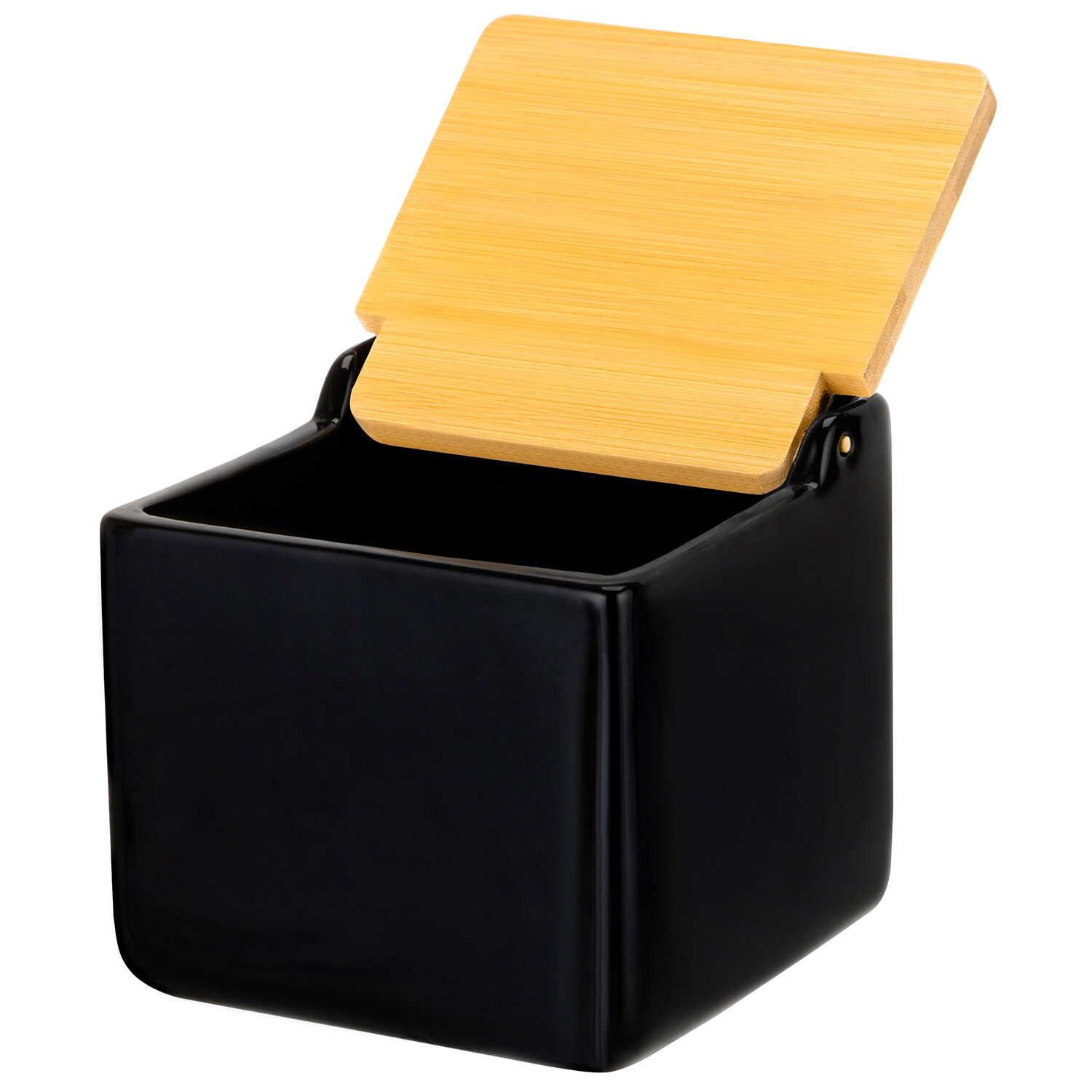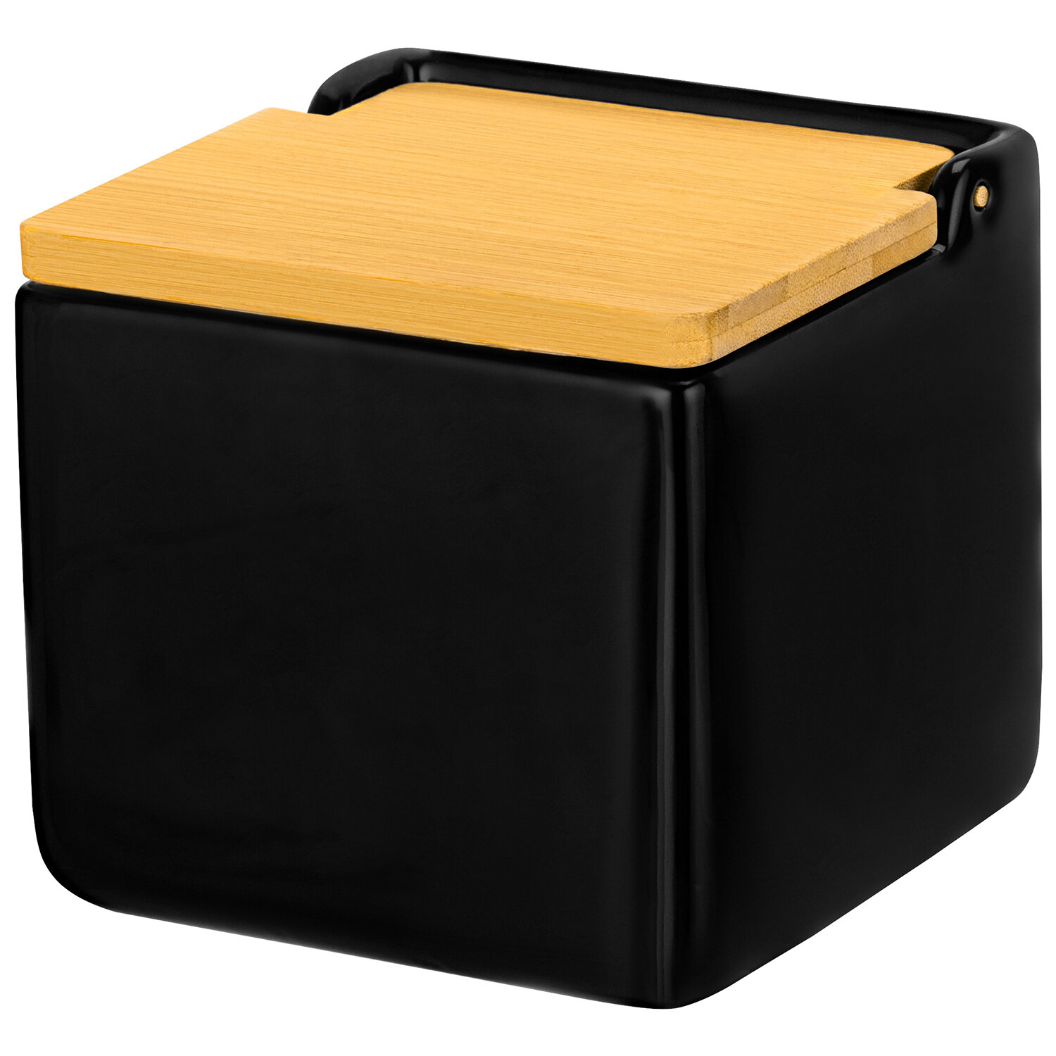 Купить Банка для хранения сыпучих продуктов 700 мл Elan Gallery Черная с откидной бамбуковой крышкой, керамика